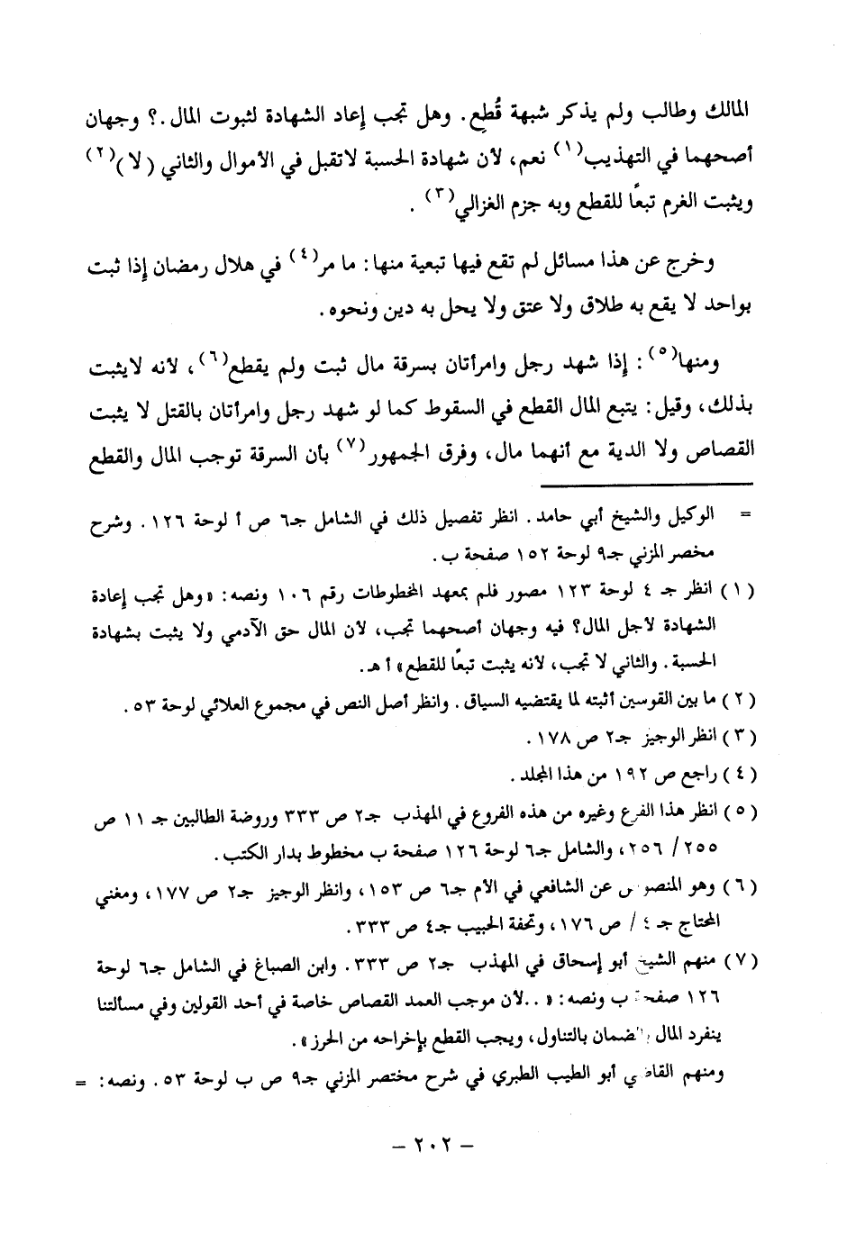 (¬1) انظر ج 4 لوحة 123 مصور فلم بمعهد المخطوطات رقم 106 ونصه: "وهل تجب إِعادة الشهادة لأجل المال؟ فيه وجهان أصحهما تجب، لأن المال حق الآدمي ولا يثبت بشهادة الحسبة. والثاني لا تجب، لأنه يثبت تبعًا للقطع" أهـ.