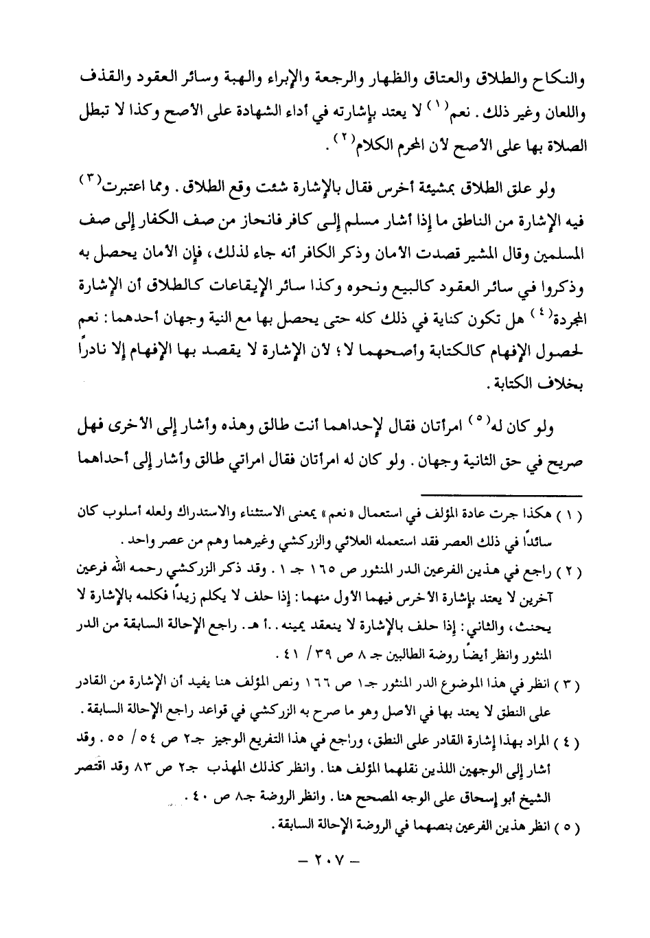(¬3) انظر في هذا الموضوع الدر المنثور جـ 1 ص 166 ونص المؤلف هنا يفيد أن الإشارة من القادر على النطق لا يعتد بها في الأصل وهو ما صرح به الزركشي في قواعد راجع الإِحالة السابقة.