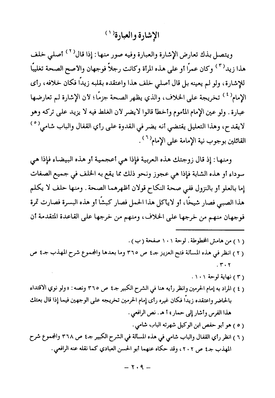 (¬6) انظر رأى القفال والباب شامي في هذه المسألة في الشرح الكبير جـ 4 ص 368 والمجموع شرح المهذب جـ 4 ص 202، وقد حكاه عنهما أبو الحسن العبادى كما نقله عنه الرافعي.