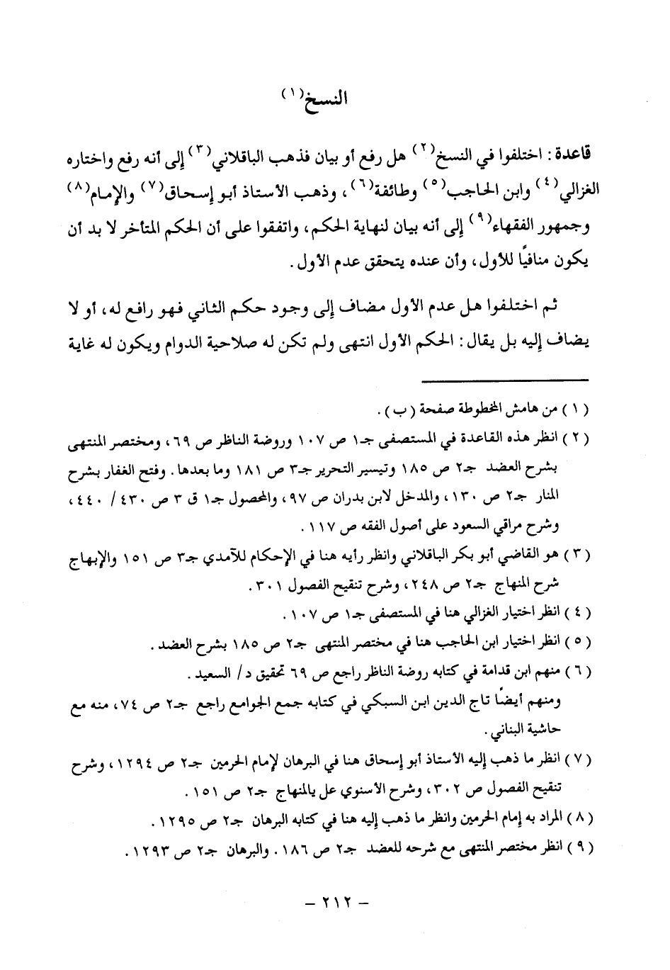 (¬9) انظر مختصر المنتهى مع شرحه للعضد جـ 2 ص 186. والبرهان جـ 2 ص 1293.