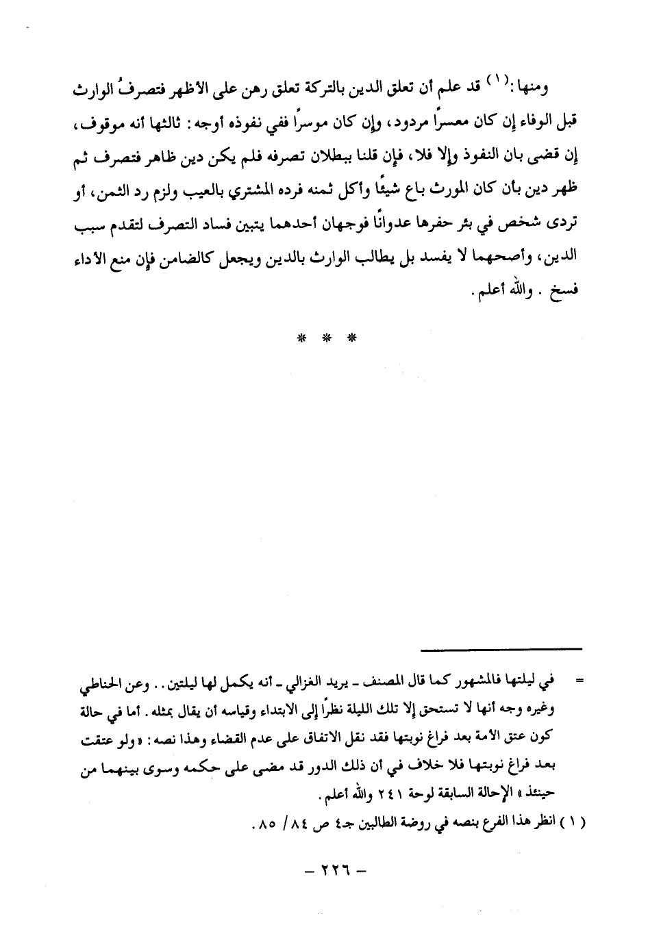 (¬1) انظر هذا الفرع بنصه في روضة الطالبين جـ 4 ص 84/ 85.