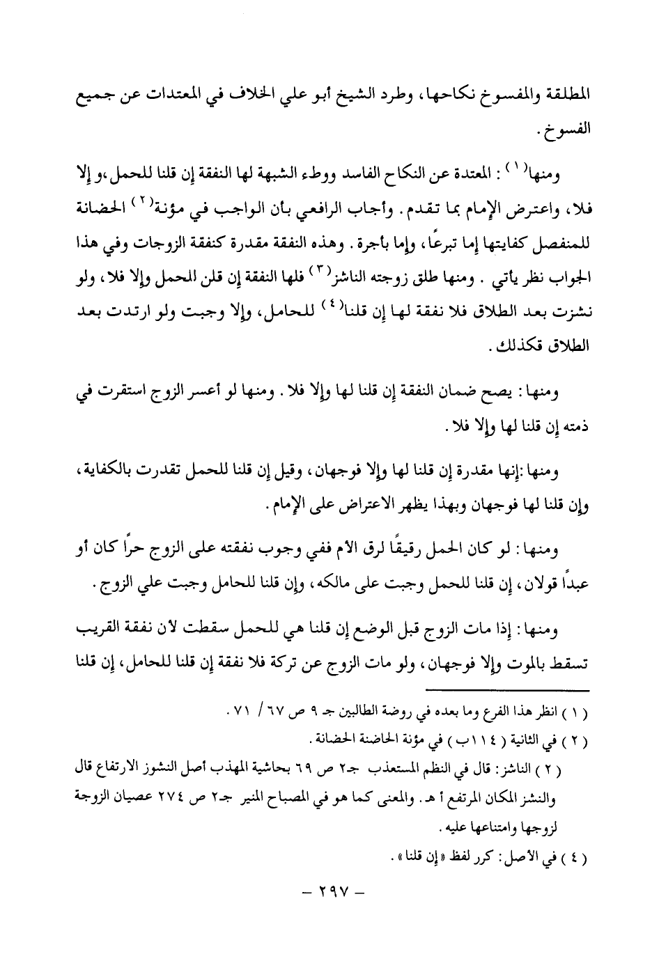 ومنها (¬1): المعتدة عن النكاح الفاسد ووطء الشبهة لها النفقة إِن قلنا للحمل، وإِلا فلا، واعترض الإمام بما تقدم. وأجاب الرافعي بأن الواجب في مؤنة (¬2) الحضانة للمنفصل كفايتها إِما تبرعًا، وإما بأجرة. وهذه النفقة مقدرة كنفقة الزوجات وفي هذا الجواب نظر يأتي. ومنها طلق زوجته الناشز (¬3) فلها النفقة إِن قلن للحمل وإلا فلا، ولو نشزت بعد الطلاق فلا نفقة لها إِن قلنا (¬4) للحامل، وإلا وجبت ولو ارتدت بعد الطلاق فكذلك.