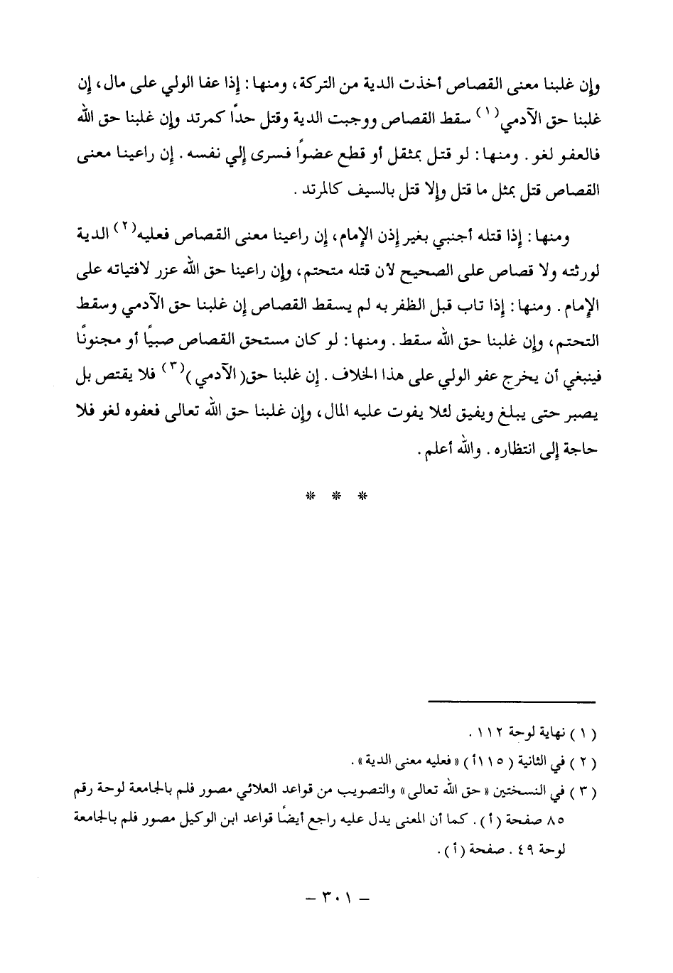 (¬3) فى النسختين "حق الله تعالى" والتصويب من قواعد العلائي مصور فلم بالجامعة لوحة رقم 85 صفحة (أ). كما أن المعنى يدل عليه راجع أيضًا قواعد ابن الوكيل مصور فلم بالجامعة لوحة 49. صفحة (أ).