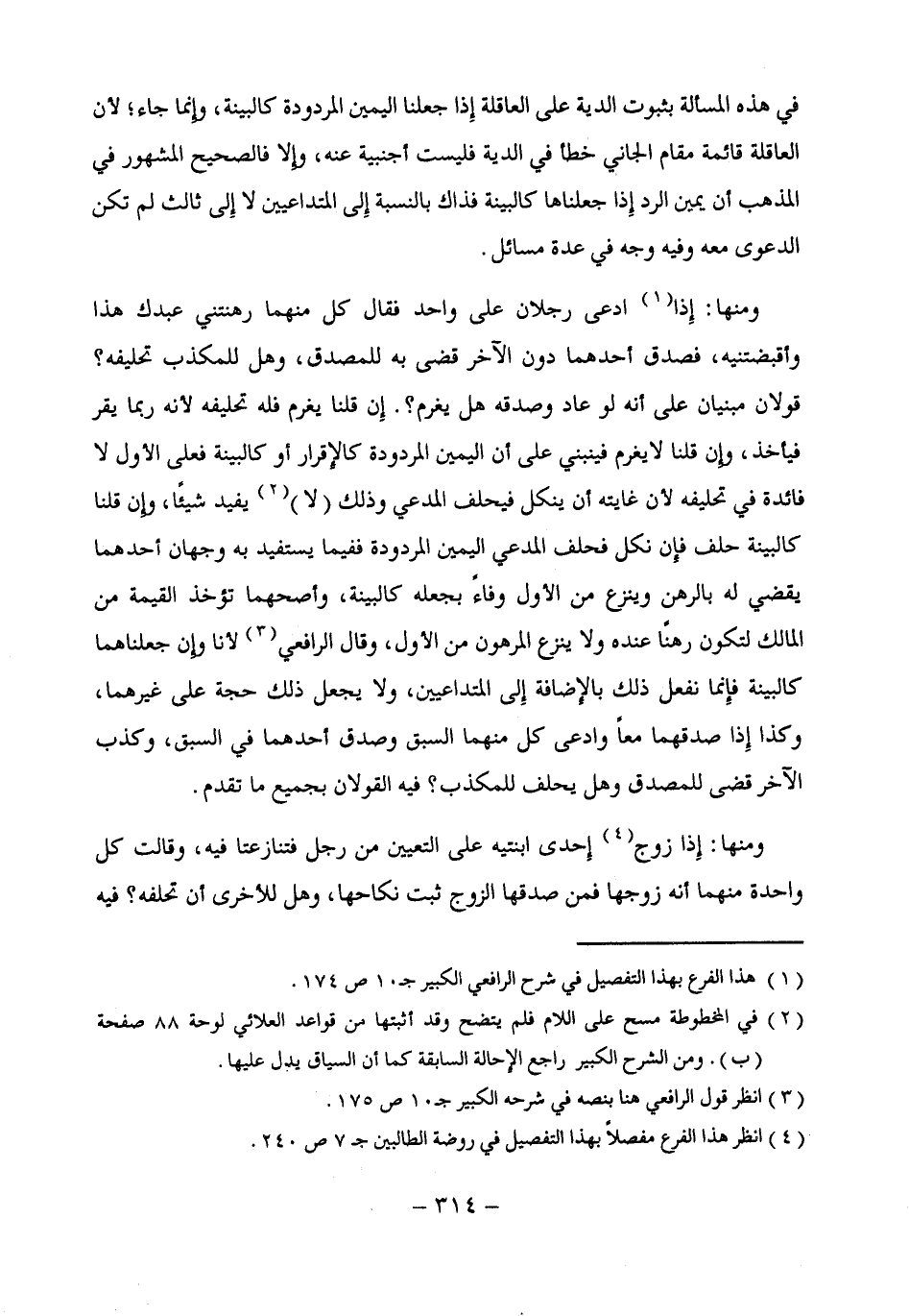(¬4) انظر هذا الفرع مفصلاً بهذا التفصيل في روضة الطالبين جـ 7 ص 240.