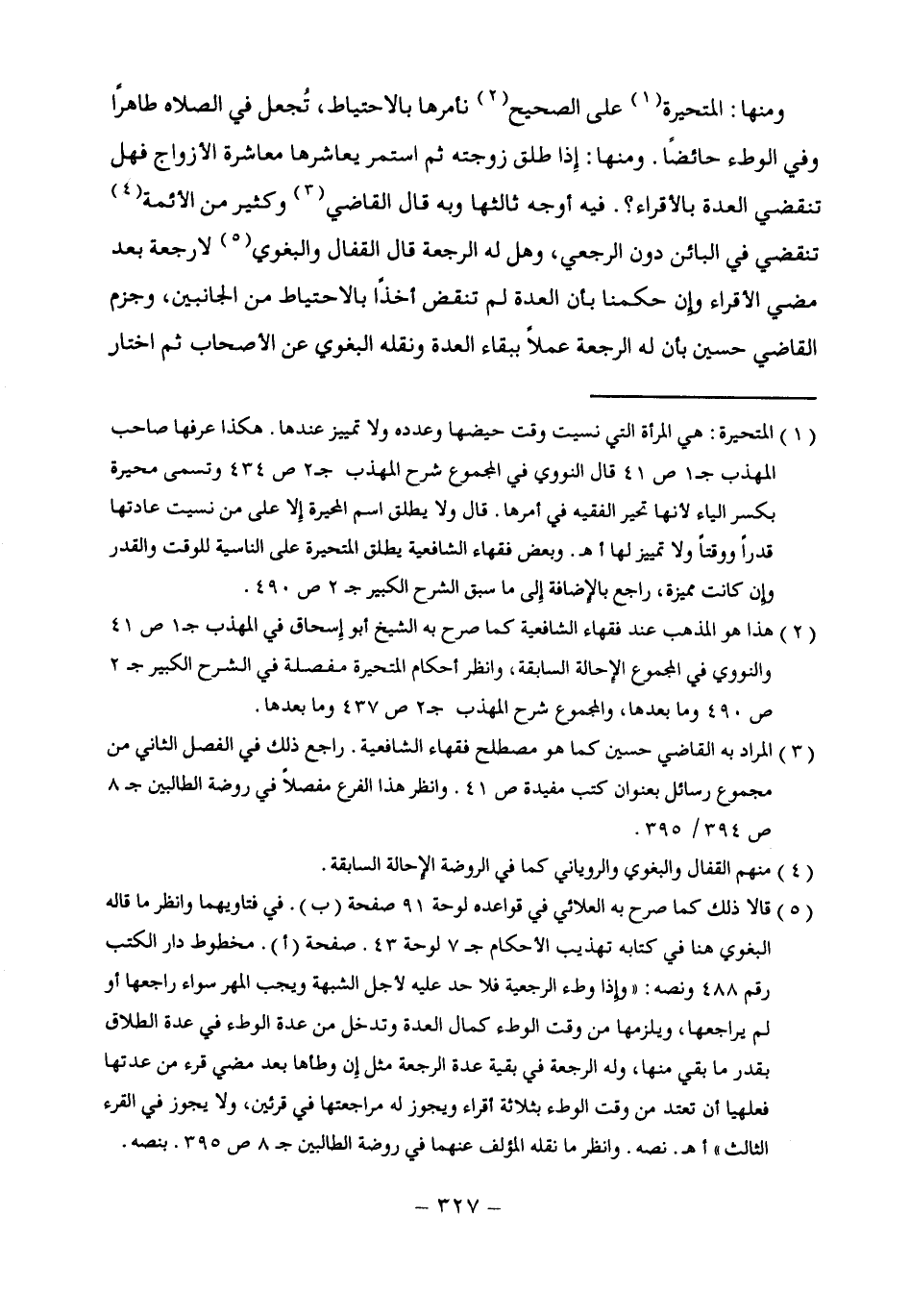 (¬5) قالا ذلك كما صرح به العلائي في قواعده لوحة 91 صفحة (ب). في فتاويهما وانظر ما قاله البغوى هنا في كتابه تهذيب الأحكام جـ 7 لوحة 43. صفحة (أ). مخطوط دار الكتب رقم 488 ونصه: "وإِذا وطء الرجعية فلا حد عليه لأجل الشبهة ويجب المهر سواء راجعها أو لم يراجعها، ويلزمها من وقت الوطء كمال العدة وتدخل من عدة الوطء في عدة الطلاق بقدر ما بقي منها، وله الرجعة في بقية عدة الرجعة مثل إِن وطأها بعد مضي قرء من عدتها فعلهيا أن تعتد من وقت الوطء بثلاثة أقراء ويجوز له مراجعتها في قرئين، ولا يجوز في القرء الثالث" أهـ. نصه. وانظر ما نقله المؤلف عنهما في روضة الطالبين جـ 8 ص 395. بنصه.
