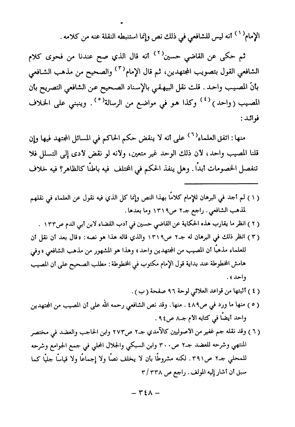 (¬5) منها ما ورد في ص 489. منها. وقد نص الشافعي رحمه الله على أن المصيب من المجتهدين واحد أيضًا في كتابه الأم جـ 8 ص 94.