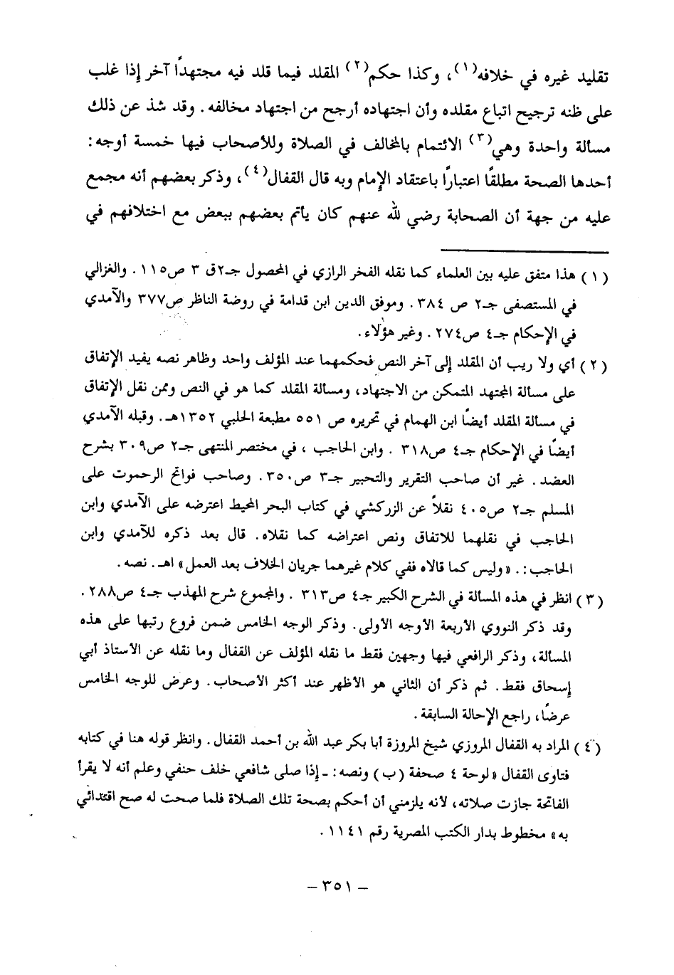 (¬1) هذا متفق عليه بين العلماء كما نقله الفخر الرازى في المحصول جـ 2 ق 3 ص 115. والغزالي في المستصفى جـ 2 ص 384. رموفق الدين ابن قدامة في ررضة الناظر ص 377 والآمدى في الإحكام جـ 4 ص 274. وغير هؤلاء ...