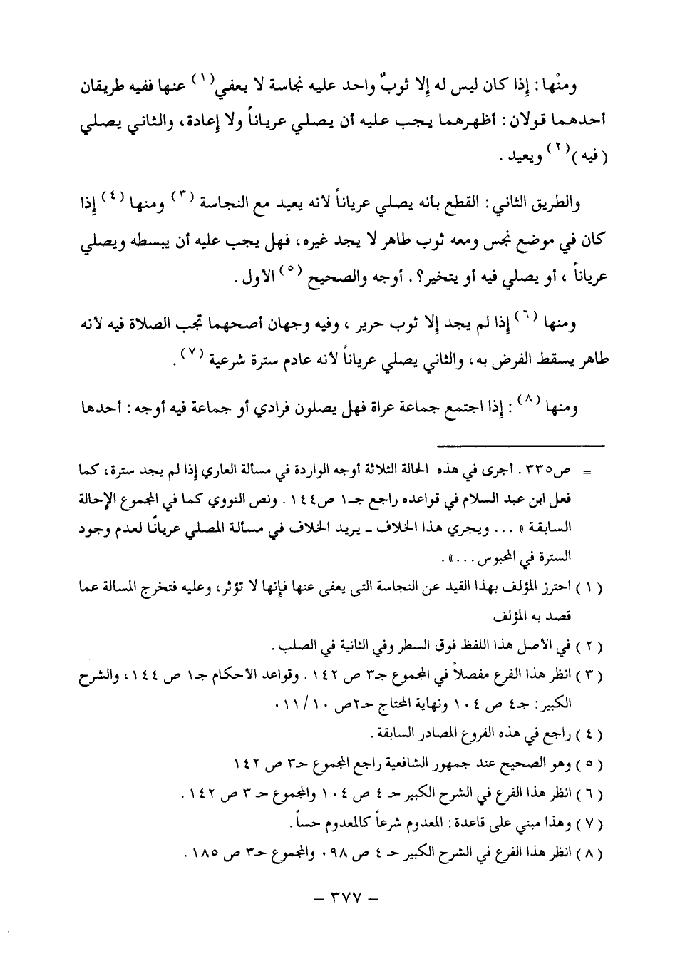 = ص 335. أجرى في هذه الحالة الثلاثة أوجه الواردة في مسألة العاري إِذا لم يجد سترة، كما فعل ابن عبد السلام في قواعده راجع جـ 1 ص 144. ونص النووي كما في المجموع الإحالة السابقة " ... ويجرى هذا الخلاف - يريد الخلاف في مسألة المصلي عريانًا لعدم وجود السترة في المحبوس ... ".