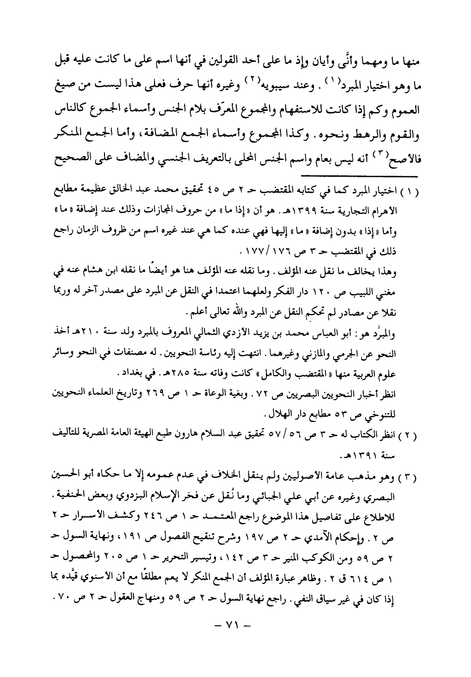 وهذا يخالف ما نقل عنه المؤلف. وما نقله عنه المؤلف هنا هو أيضًا ما نقله ابن هشام عنه فى مغني اللبيب ص 120 دار الفكر ولعلهما اعتمدا في النقل عن المبرد على مصدر آخر له وربما نقلا عن مصادر لم تحكم النقل عن البرد والله تعالى أعلم.