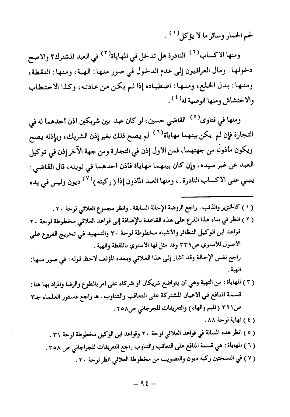 (¬3) المهايأة: من التهية وهي أن يتواضع شريكان أو شركاء على أمر بالطوع والرضا والمراد بها هنا: قسمة المنافع في الأعيان المشتركة على التعاقب والتناوب. هـ راجع دستور العلماء جـ 3 ص 391 (الميم والهاء) والتعريفات للجرجاني ص 258.