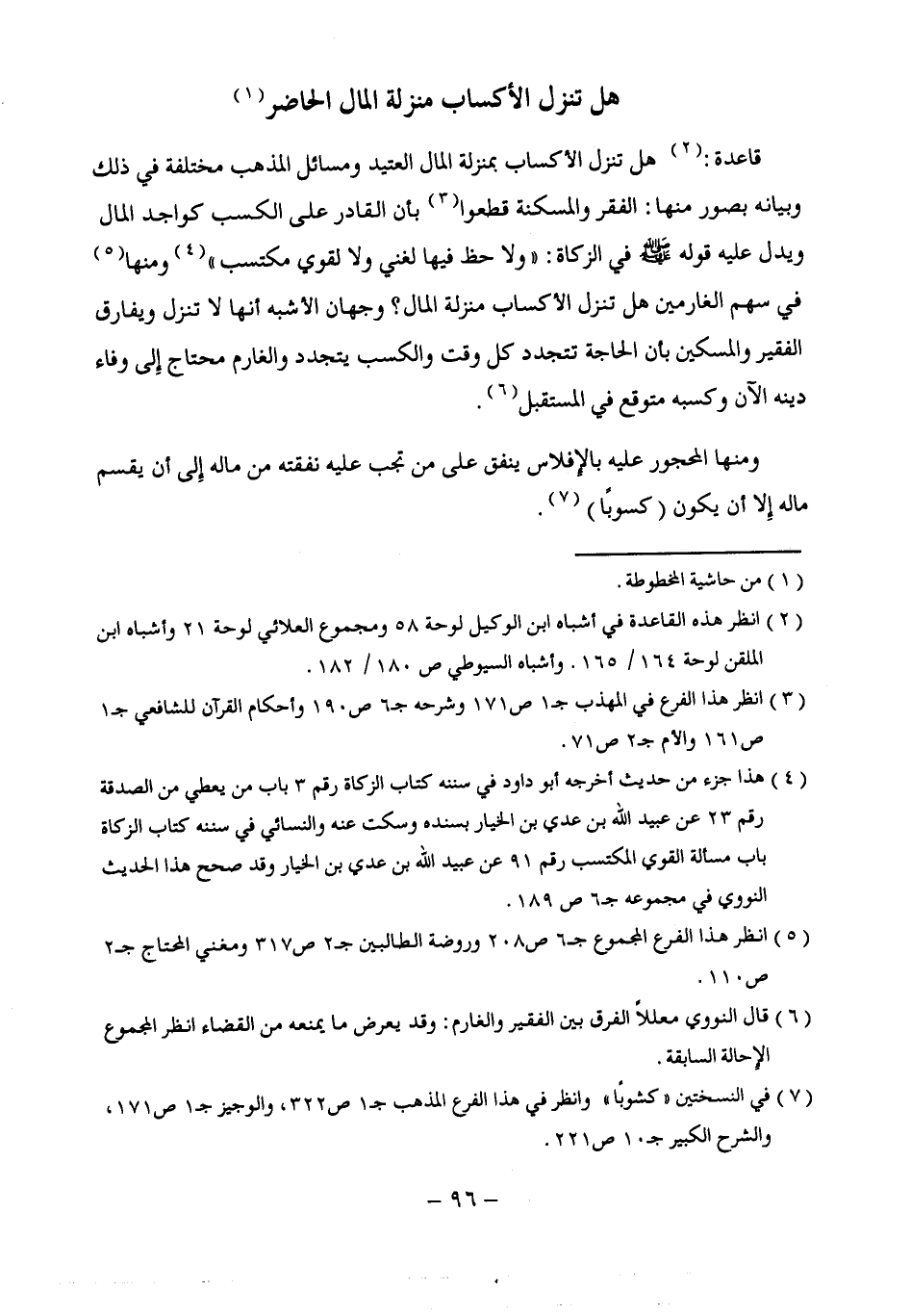 (¬5) انظر هذا الفرع المجموع جـ 6 ص 208 وروضة الطالبين جـ 2 ص 317 ومغني المحتاج جـ 2 ص 110.