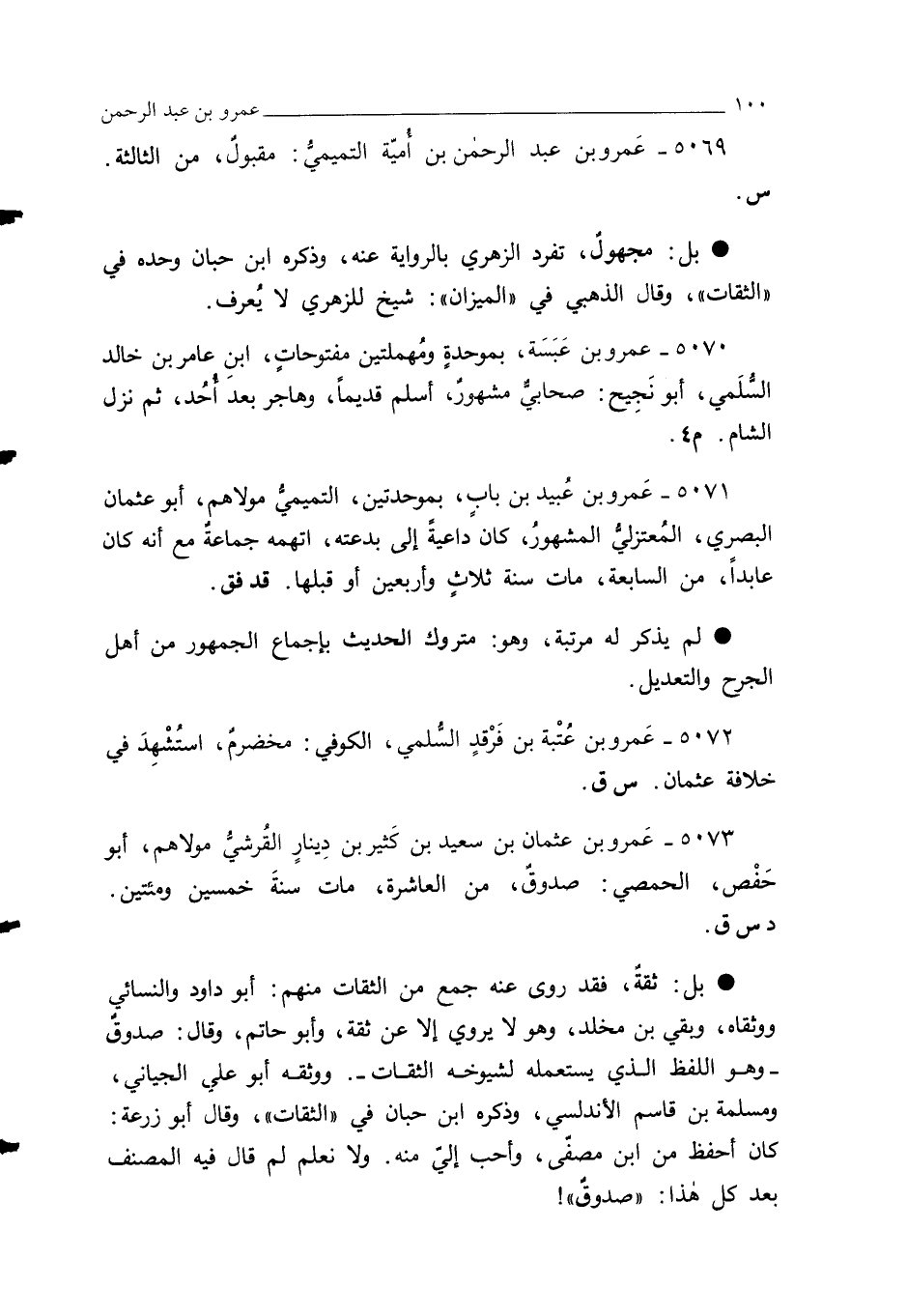5069 - عَمرو بن عبد الرحمن بن أُميّة التميميُّ: مقبولٌ، من الثالثة. س.