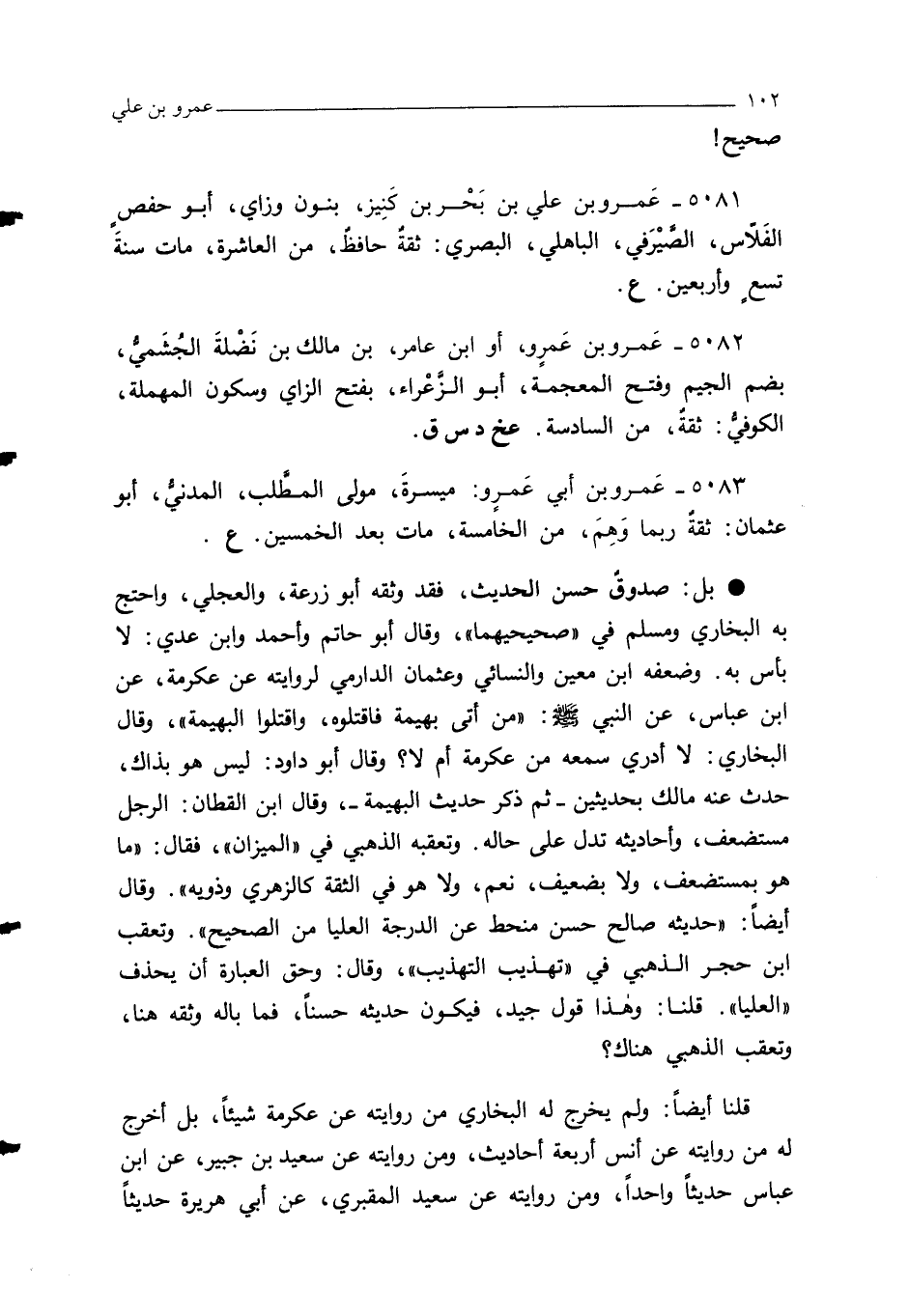 5083 - عَمرو بن أبي عَمرٍو: ميسرةَ، مولى المطَّلب، المدنيُّ، أبو عثمان: ثقةٌ ربما وَهِمَ، من الخامسة، مات بعد الخمسين. ع.