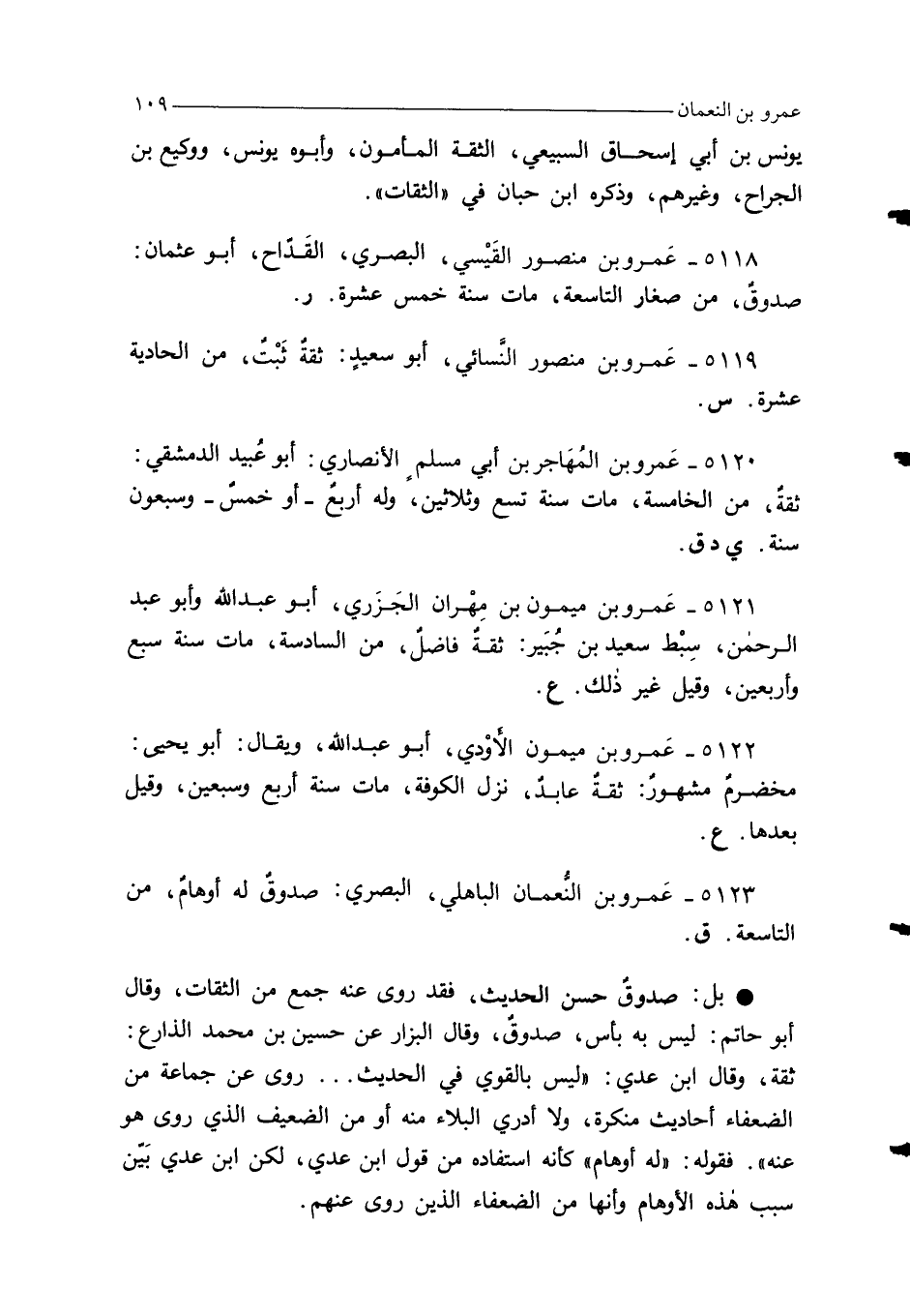 5123 - عَمرو بن النُّعمان الباهلي، البصري: صدوقٌ له أوهامٌ، من التاسعة. ق.