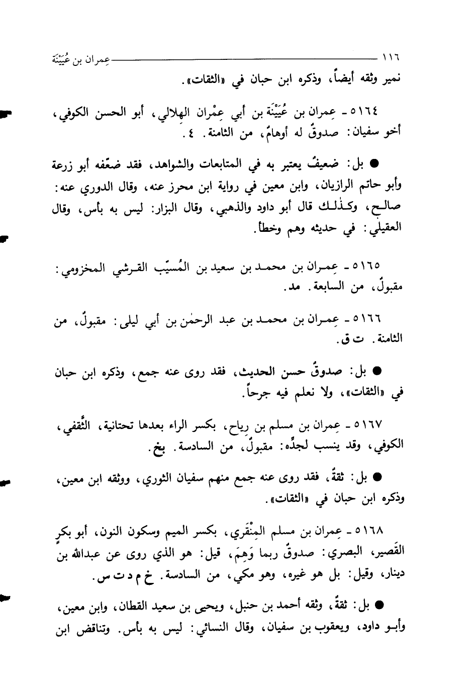 5164 - عِمران بن عُيَيْنَة بن أبي عِمْران الهِلالي، أبو الحسن الكوفي، أخو سفيان: صدوقٌ له أوهامٌ، من الثامنة. 4.