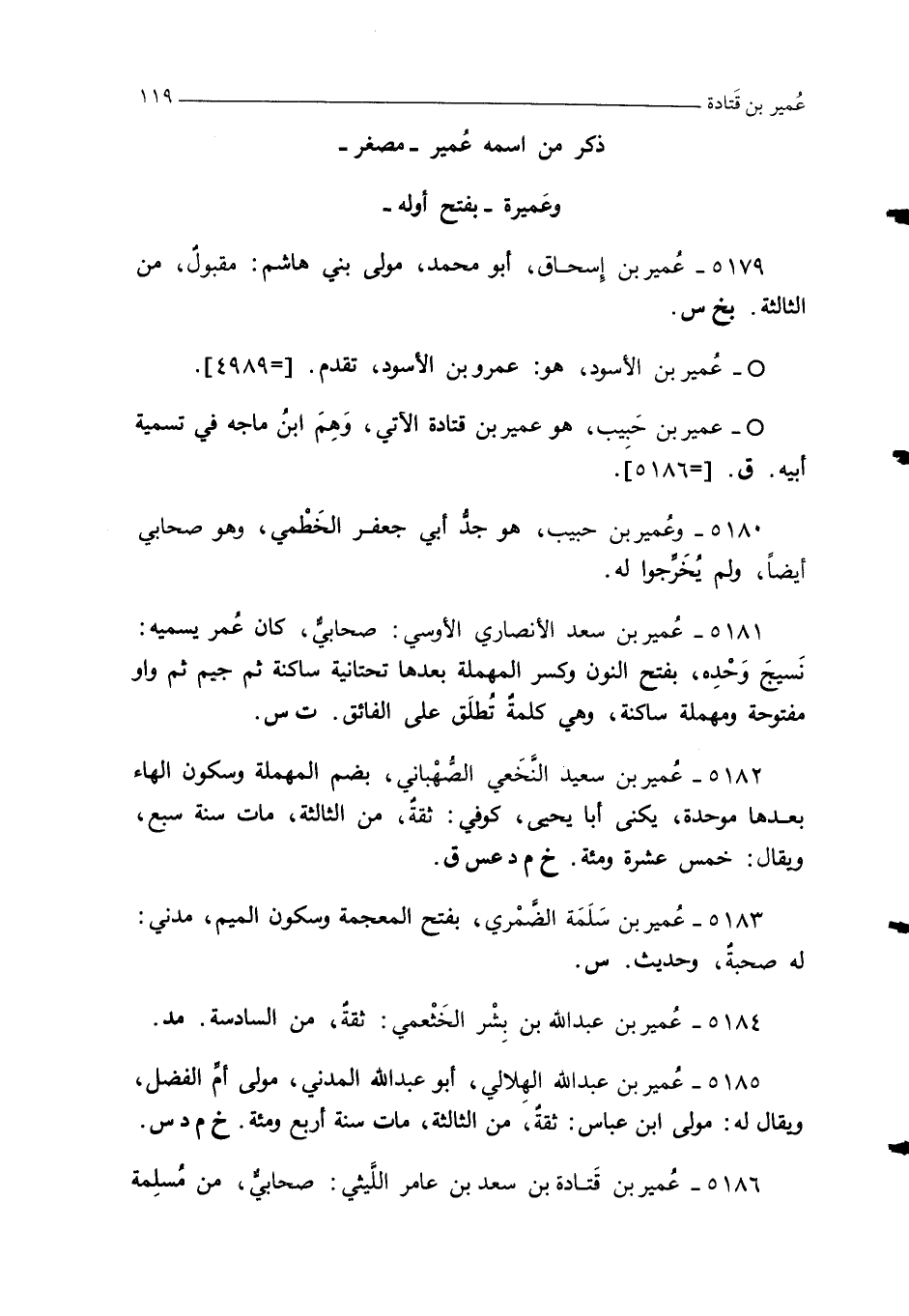 5186 - عُمير بن قَتادة بن سعد بن عامر اللَّيثي: صحابي، من مُسلِمة