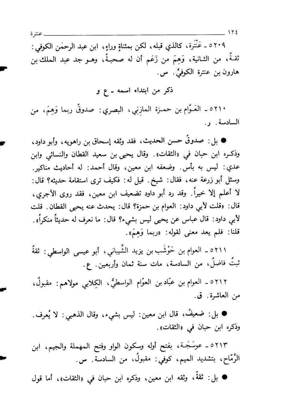 5212 - العوام بن عبّاد بن العوّام الواسطى، الكِلابي مولاهم: مقبول، من العاشرة. ق.