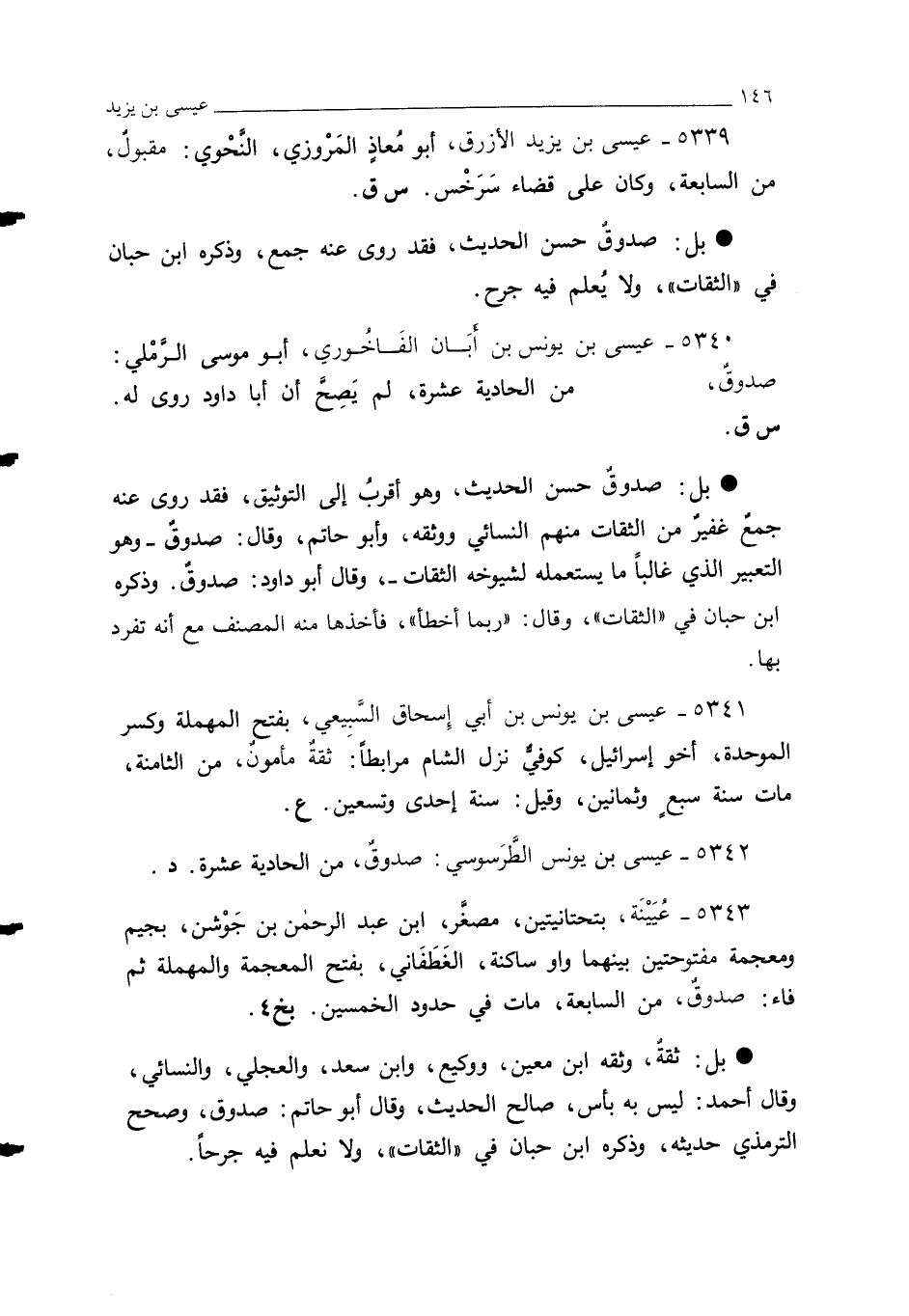 5342 - عيسى بن يونس الطَّرَسوسي: صدوقٌ، من الحادية عشرة. د.