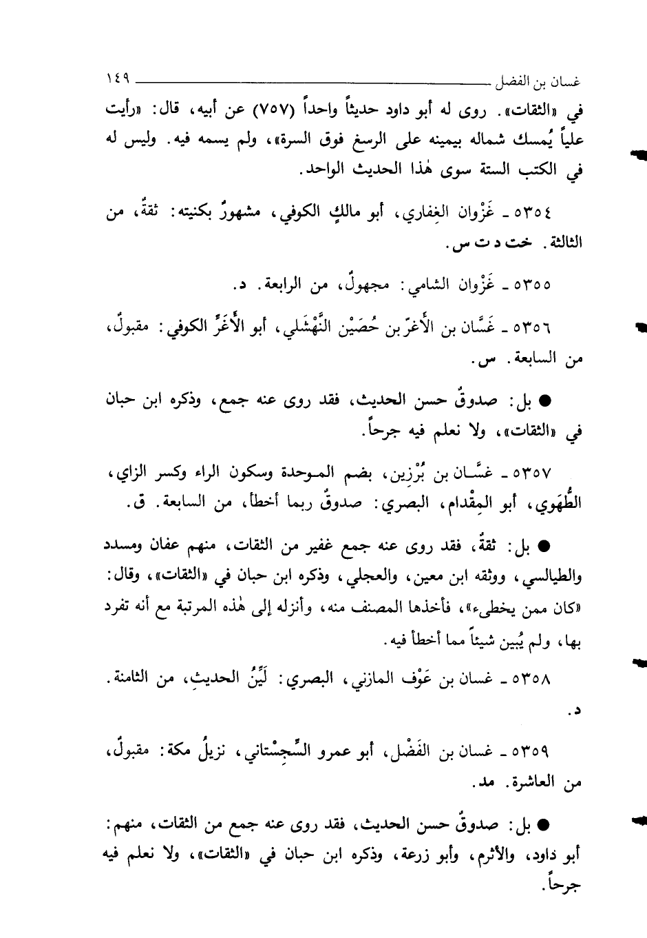 5359 - غسان بن الفَضْل، أبو عمرو السَّجِسْتاني، نزيلُ مكة: مقبولٌ، من العاشرة. مد.
