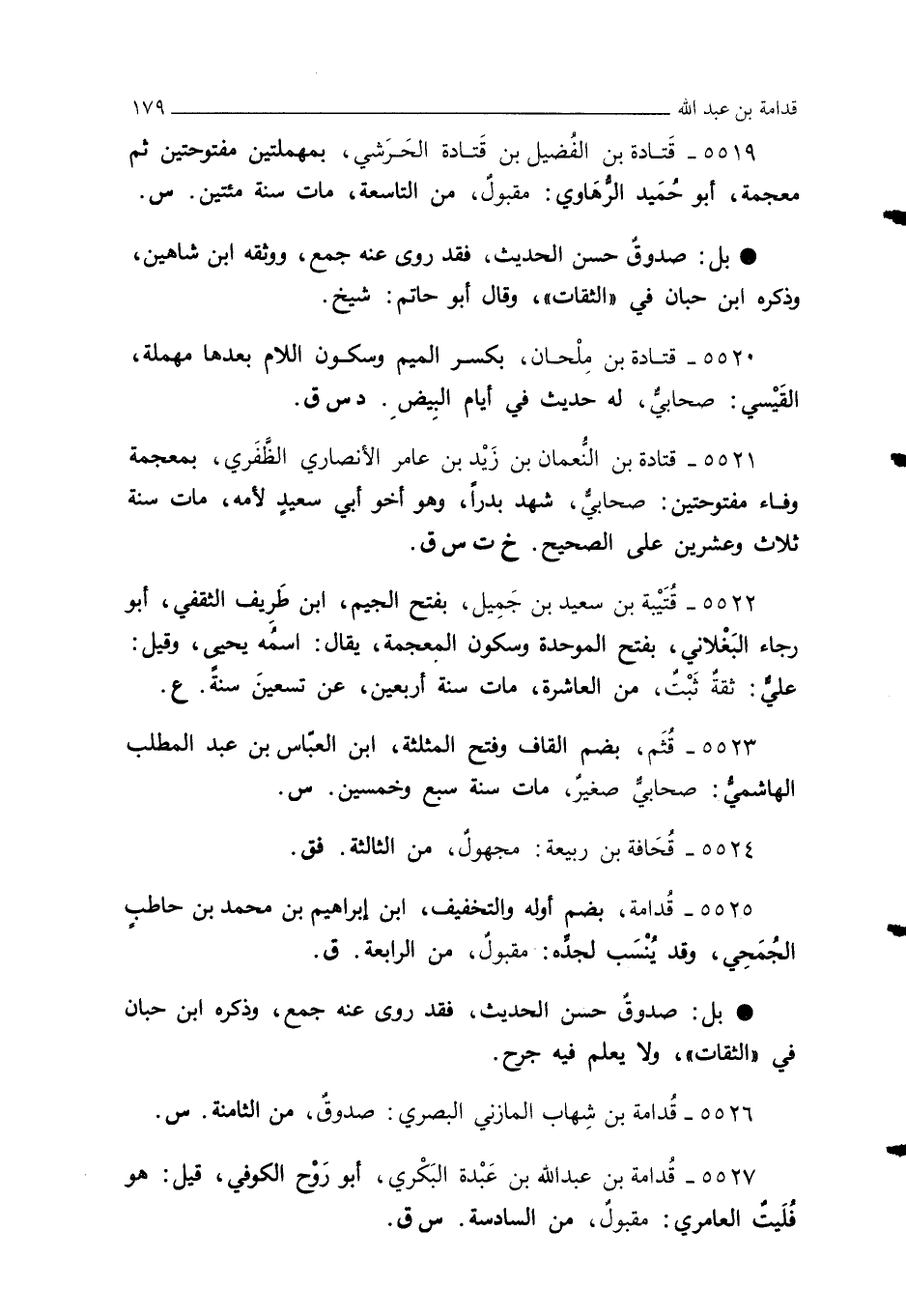 5526 - قُدامة بن شِهاب المازني البصري: صدوقٌ، من الثامنة. س.