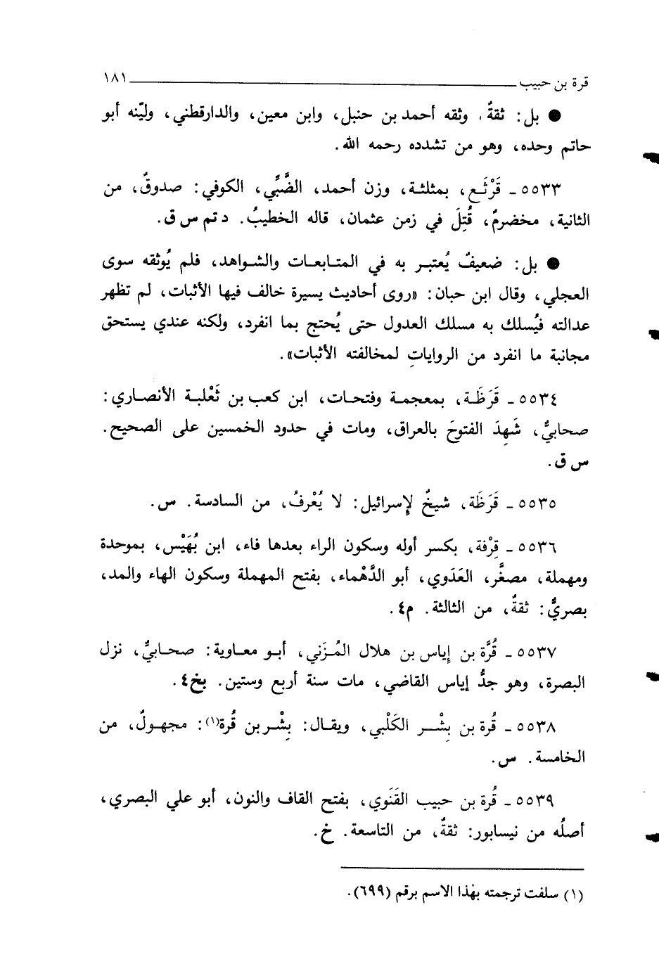 5537 - قرَّة بن إِياس بن هلالى المُزَني, أبو معاويهْ: صحابيٌّ، نزل البصرة، وهو جدُّ إياس القاضي، مات سنة أربع وستين. بخ 4.