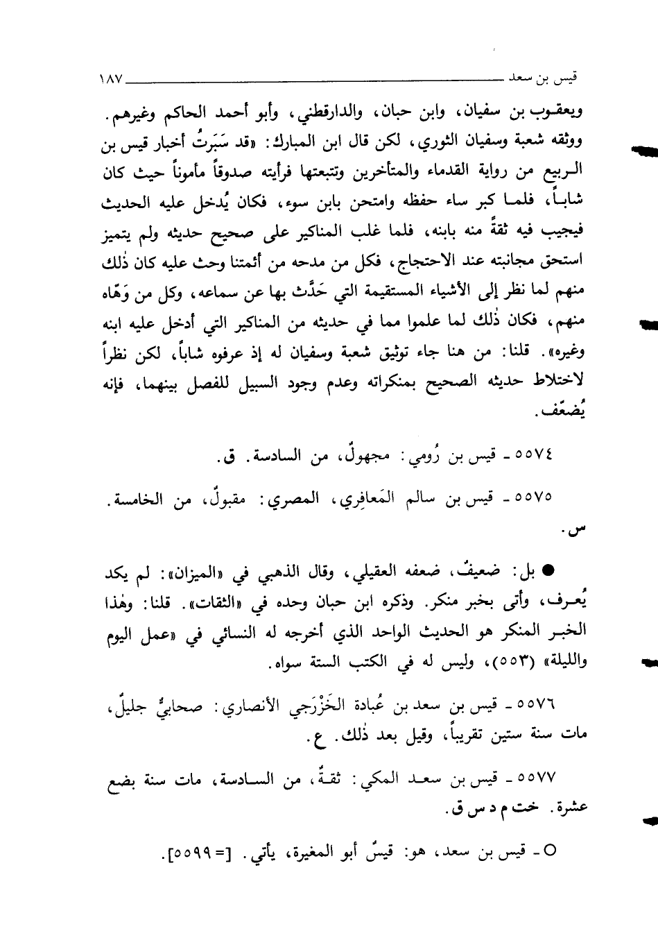 5576 - قيس بن سعد بن عُبادة الخَزْرَجي الأنصاري: صحابيٌّ جليلٌ، مات سنة ستين تقريبًا، وقيل بعد ذلك. ع.