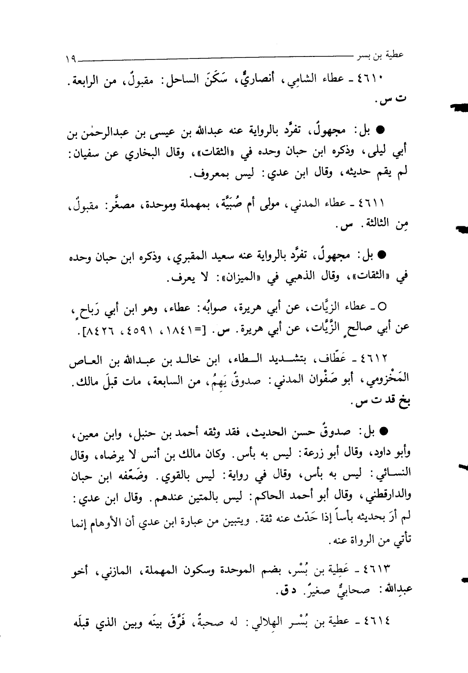 ° - عطاء الزيَّات، عن أبي هريرة، صوابُه: عطاء، وهو ابن أبي رَباحٍ، عن أبي صالحٍ الزَّيَّات، عن أبي هريرة. س. [= 1841، 4591، 8426].