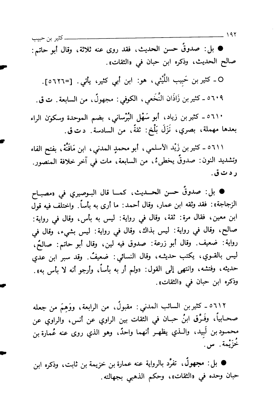 5609 - كثير بن زَاذَان النَّخَعي، الكوفي: مجهولٌ، من السابعة. ت ق.