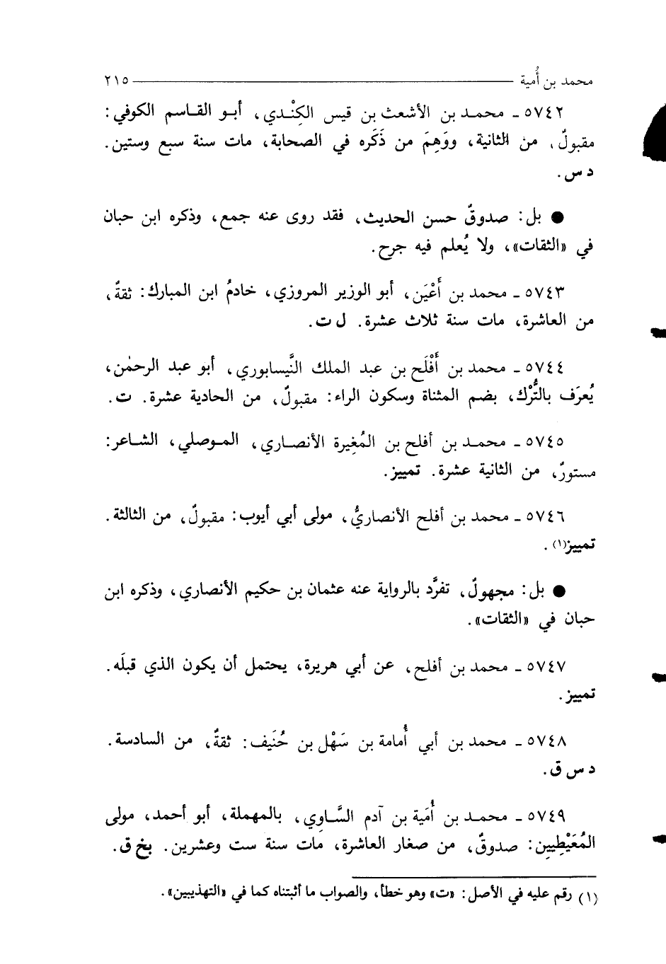 5746 - محمد بن أفلح الأنصاريُّ، مولى أبي أيوب: مقبولٌ، من الثالثة. تمييز (¬1).