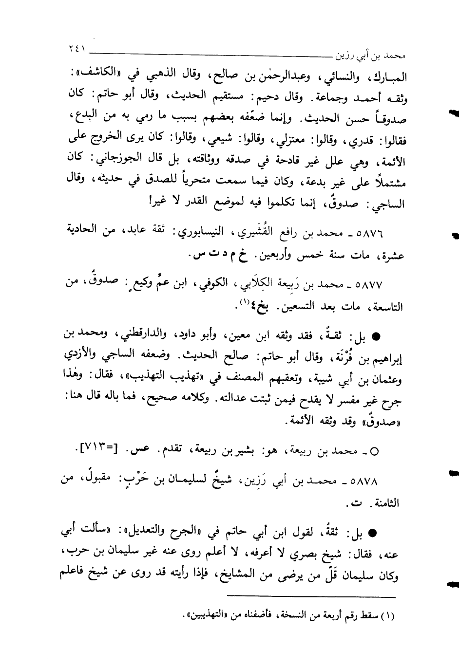 5876 - محمد بن رافع القُشَيري، النيسابوري: ثقة عابد، من الحادية عشرة، مات سنة خمس وأربعين. خ م دت س.