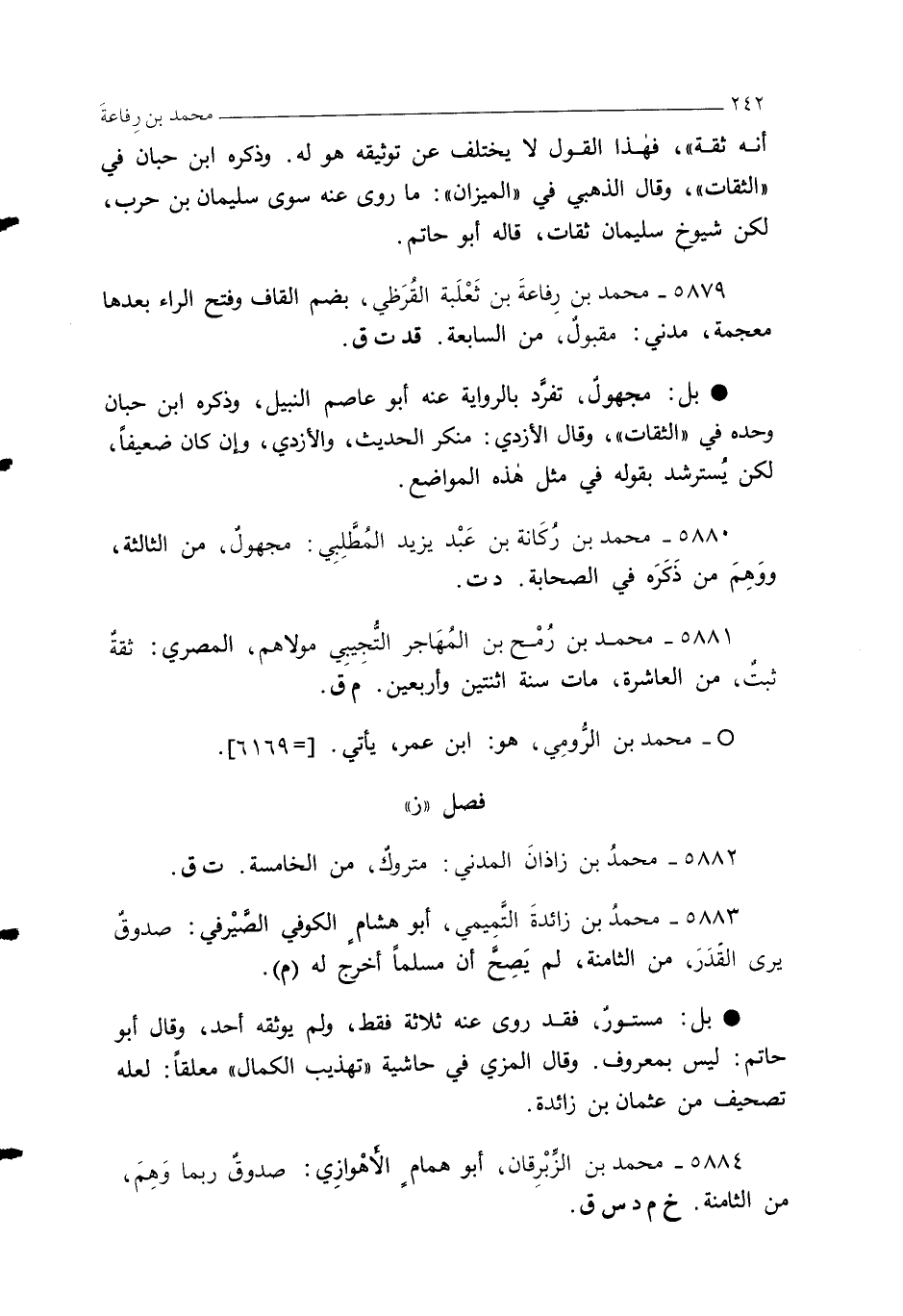 5882 - محمدُ بن زاذانَ المدني: متروكٌ، من الخامسة. ت ق.
