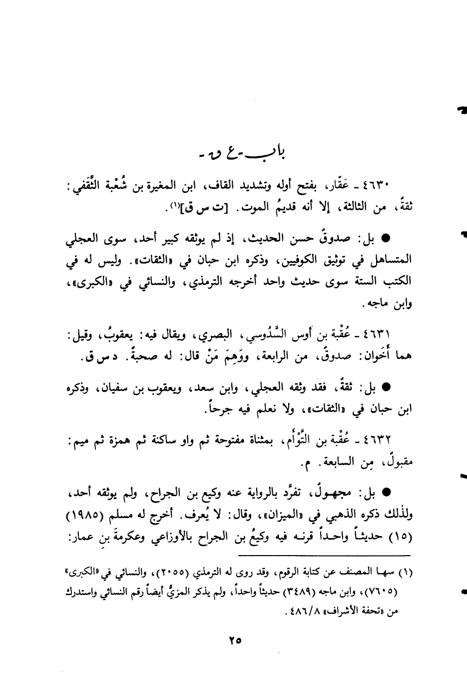 4630 - عَقّار، بفتح أوله وتشديد القاف، ابن المغيرة بن شُعْبة الثَّقَفي: ثقةٌ، من الثالثة، إلا أنه قديمُ الموت. [ت س ق] (¬1).