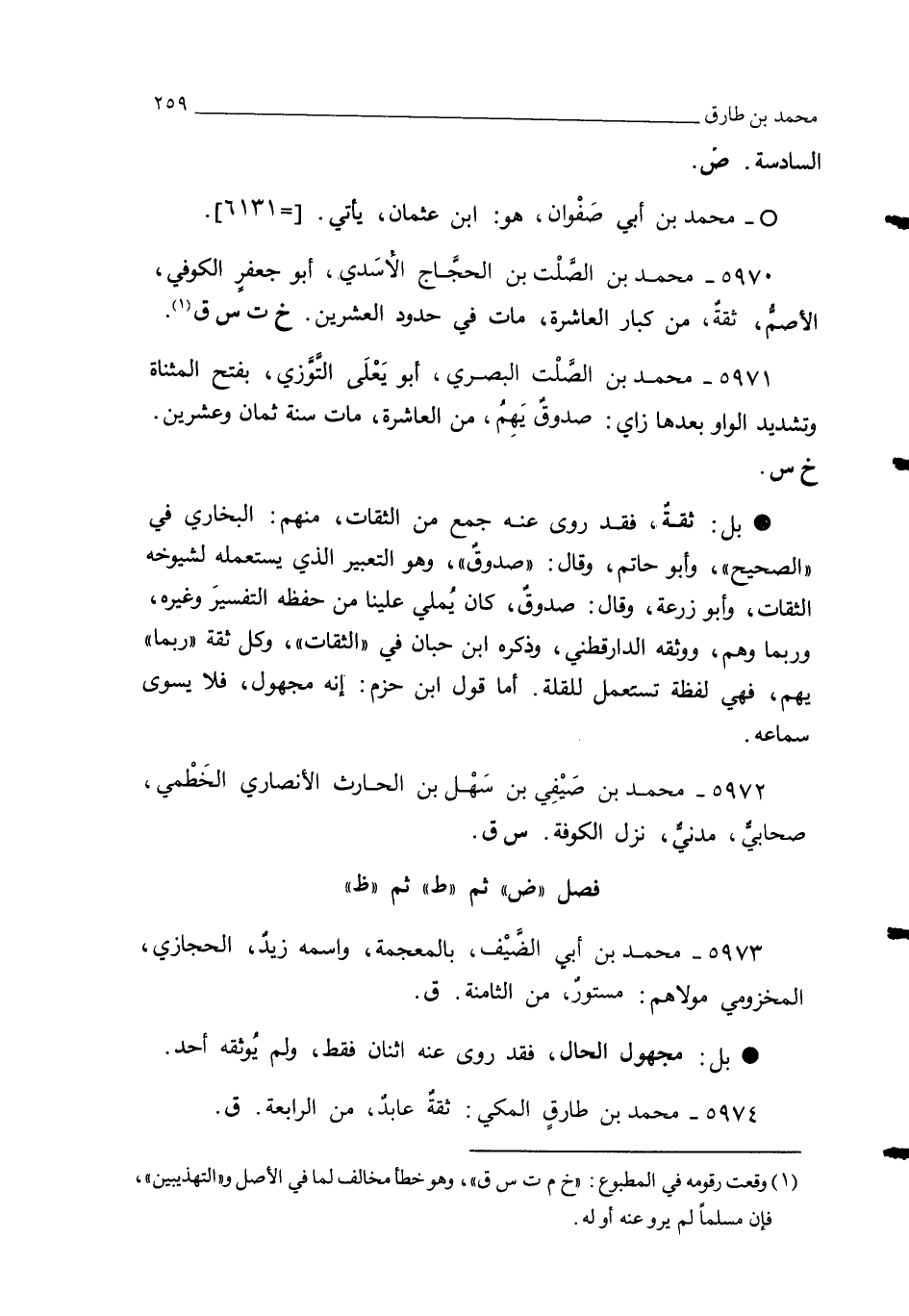 5974 - محمد بن طارقٍ المكي: ثقةٌ عابدٌ، من الرابعة. ق.