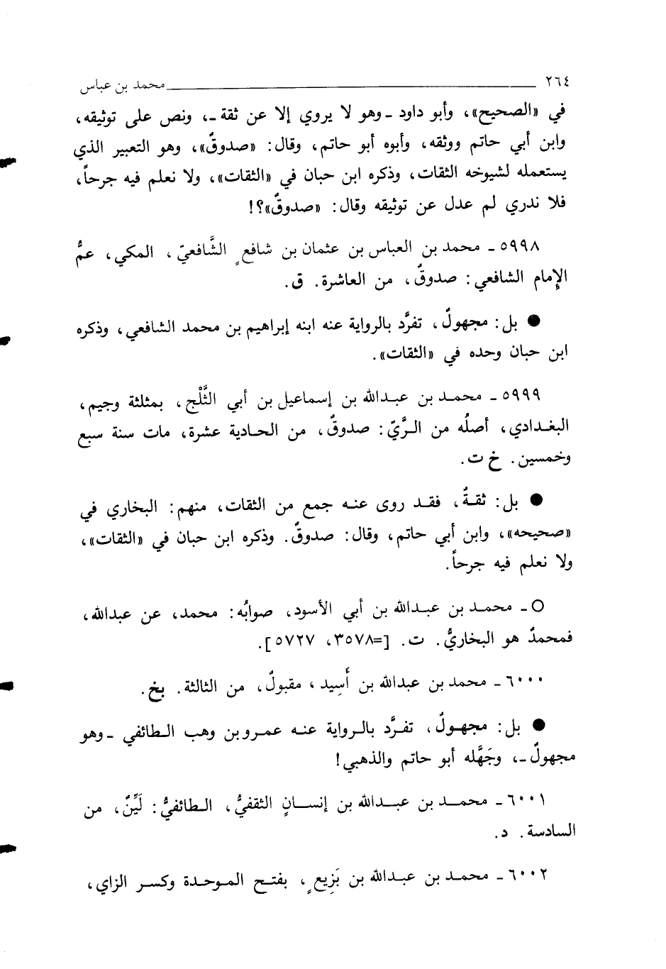 5998 - محمد بن العباس بن عثمان بن شافعٍ الشَّافعيّ، المكي، عمُّ الإِمام الشافعي: صدوقٌ، من العاشرة. ق.