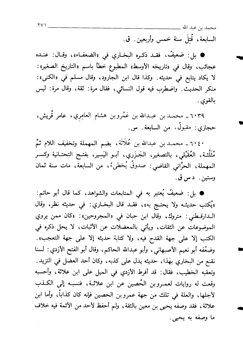 6039 - محمد بن عبد الله بن عَمْرو بن هشام العامِرِي، عامر قُريش، حجازي: مقبولٌ، من السابعة. س.