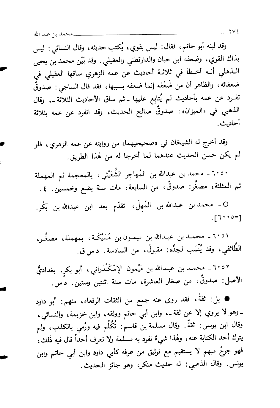 ° - محمد بن عبد الله بن المُهِلّ، تقدّم بعد ابن عبد الله بن بَكْر. [= 6005]