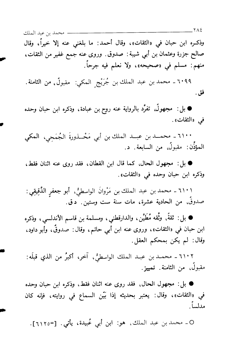 6099 - محمد بن عبد الملك بن جُرَيْجٍ المكي: مقبولٌ، من الثامنة. فق.