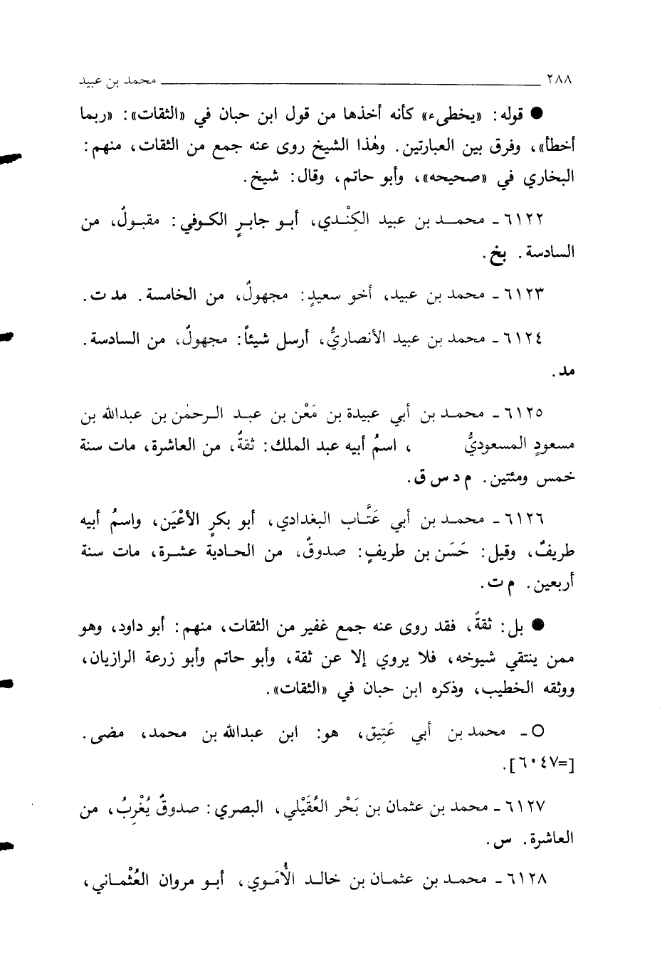 6123 - محمد بن عبيد، أخو سعيدٍ: مجهولٌ، من الخامسة. مد ت.