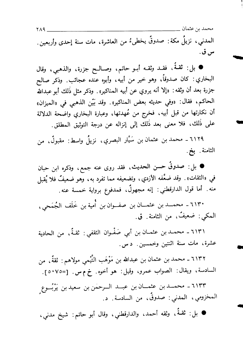 6133 - محمد بن عثمان بن عبد الرحمن بن سعيد بن يَرْبوع المخرومي، المدني: صدوق، من السادسة. د.