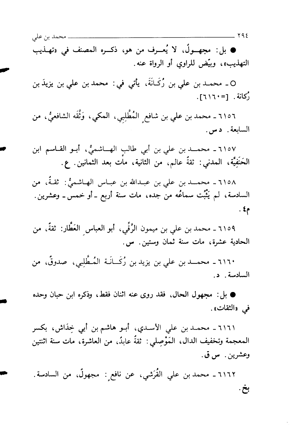 ° - محمد بن علي بن رُكَانَةَ، يأتي في: محمد بن علي بن يزيدَ بن رُكانة. [= 6160].