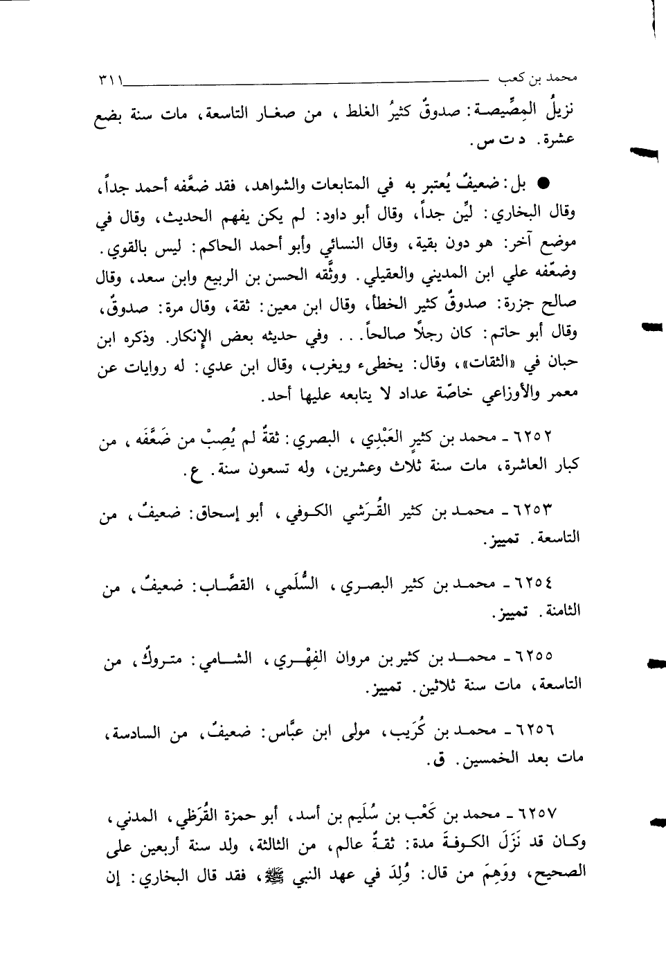 6254 - محمد بن كثير البصريُّ، السُّلَميُّ، القصَّاب: ضعيفٌ، من الثامنة. تمييز.