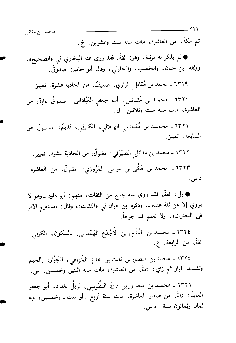 6319 - محمد بن مُقاتلٍ الرازي: ضعيفٌ، من الحادية عشرة. تمييز.