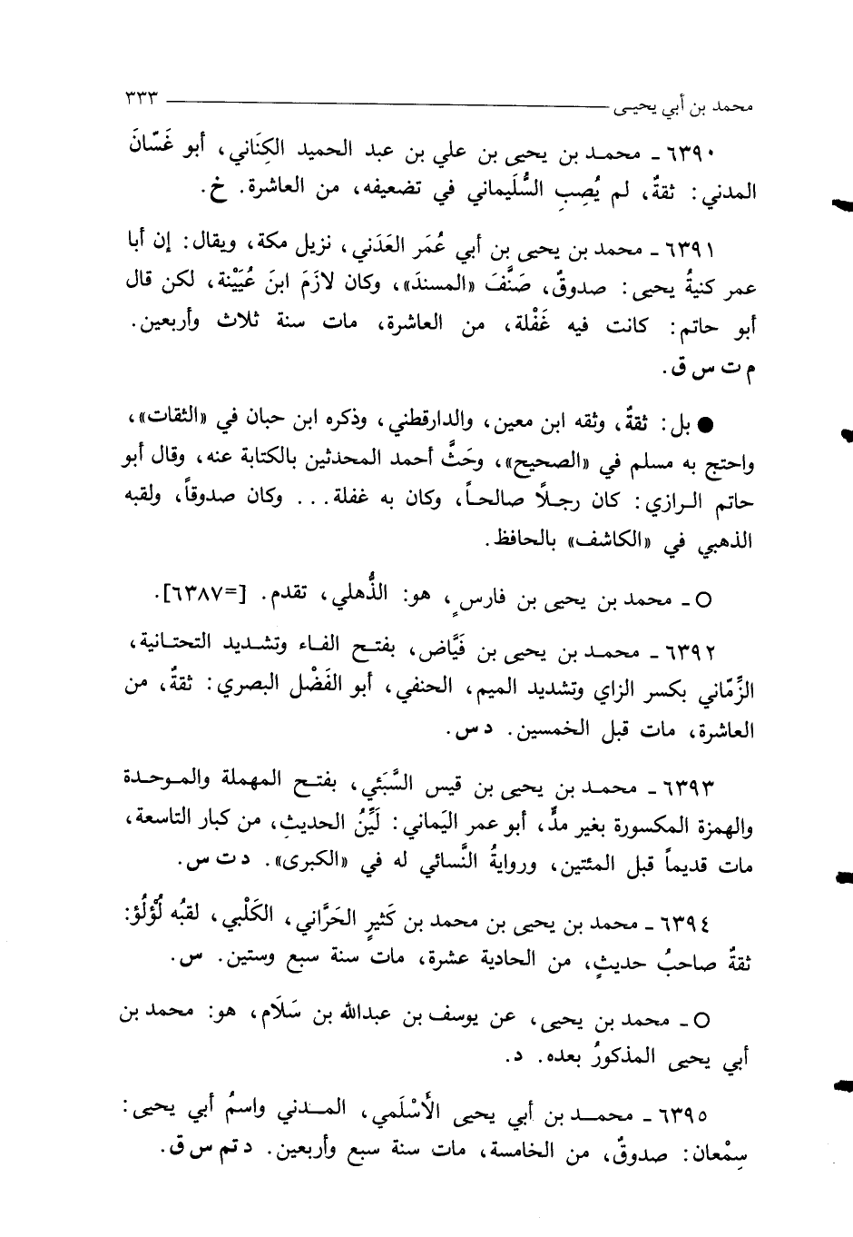 6394 - محمد بن يحيى بن محمد بن كَثيرٍ الحَرَّاني، الكَلْبي، لقبُه لُؤلُؤ: ثقةٌ صاحبُ حديثٍ، من الحادية عشرة، مات سنة سبع وستين. س.