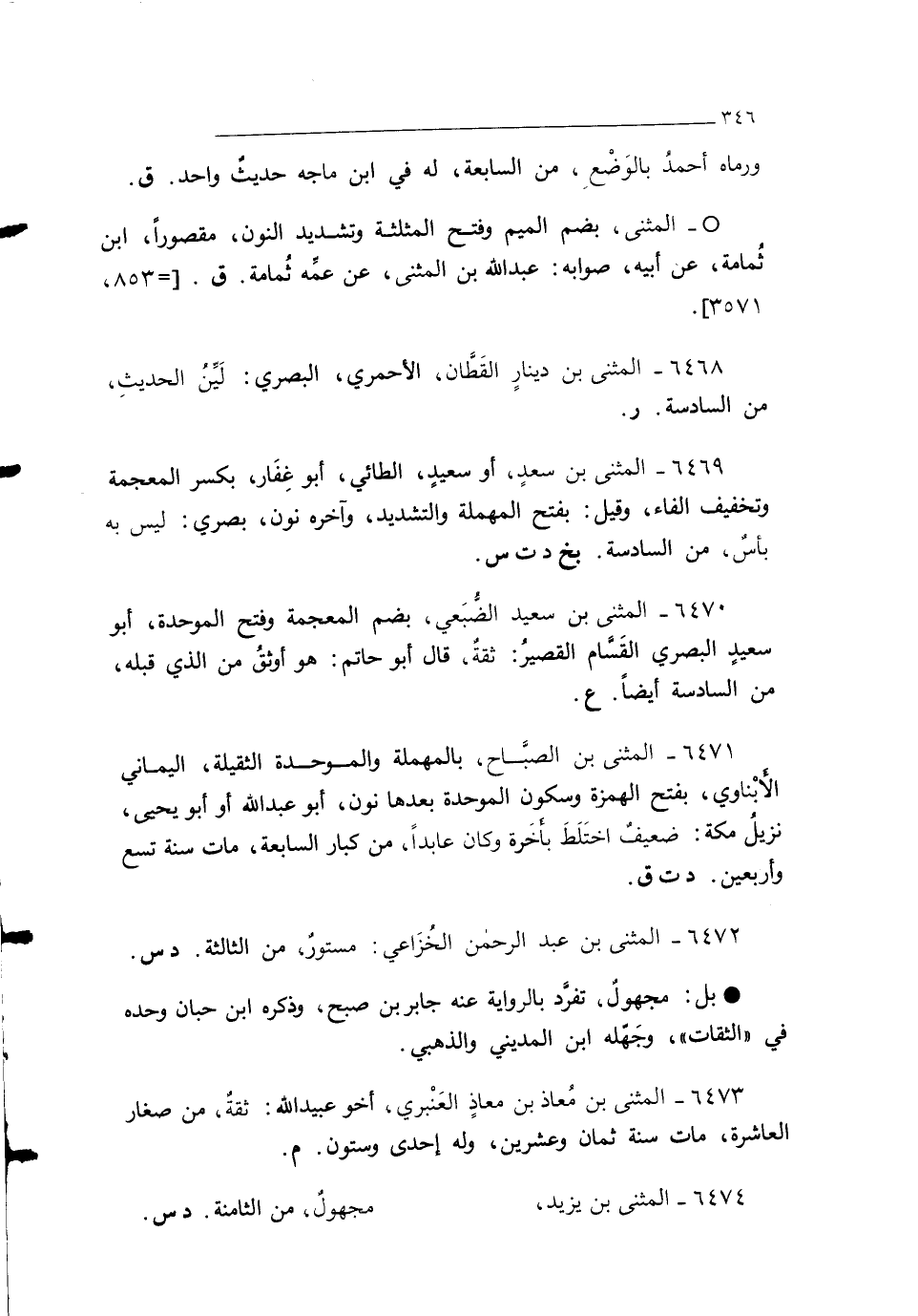 6474 - المثنى بن يزيد، مجهولٌ، من الثامنة. د س.