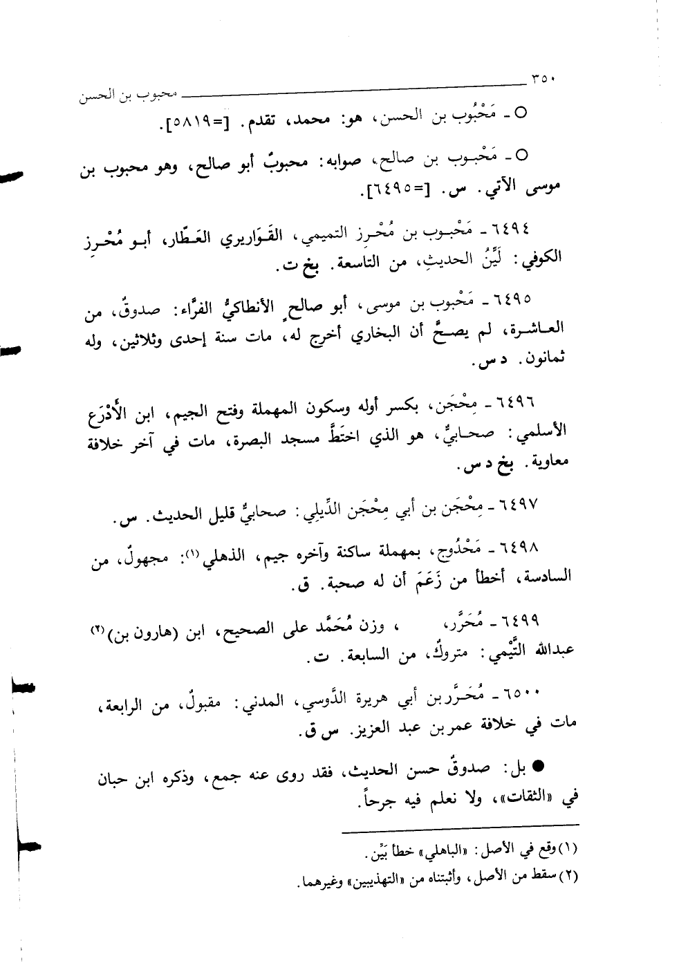 ° - مَحْبوب بن صالح، صوابه: محبوبٌ أبو صالح، وهو محبوب بن موسى الآتي. س. [= 6495].