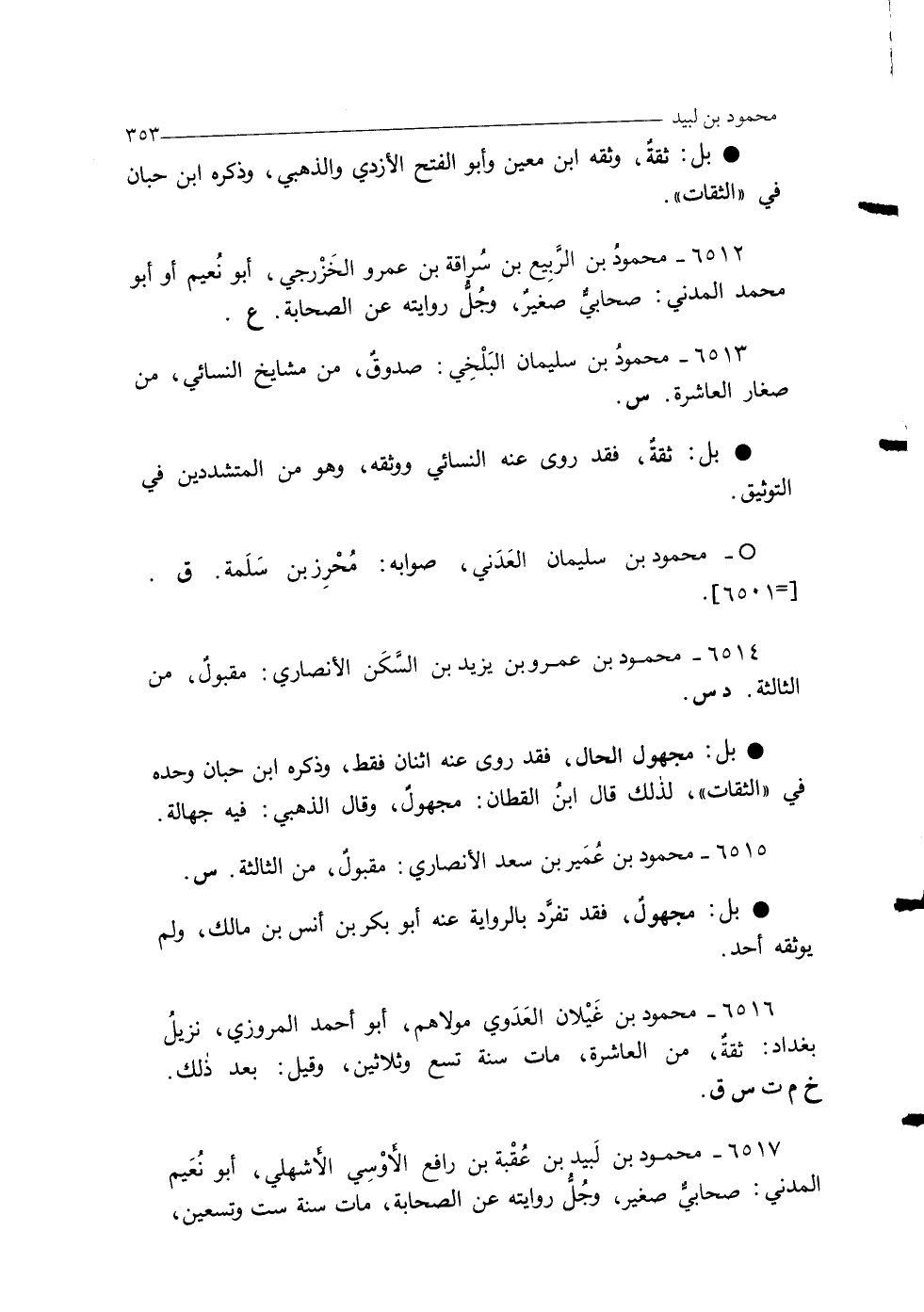 6515 - محمود بن عُمَير بن سعد الأنصاري: مقبولٌ، من الثالثة. س.