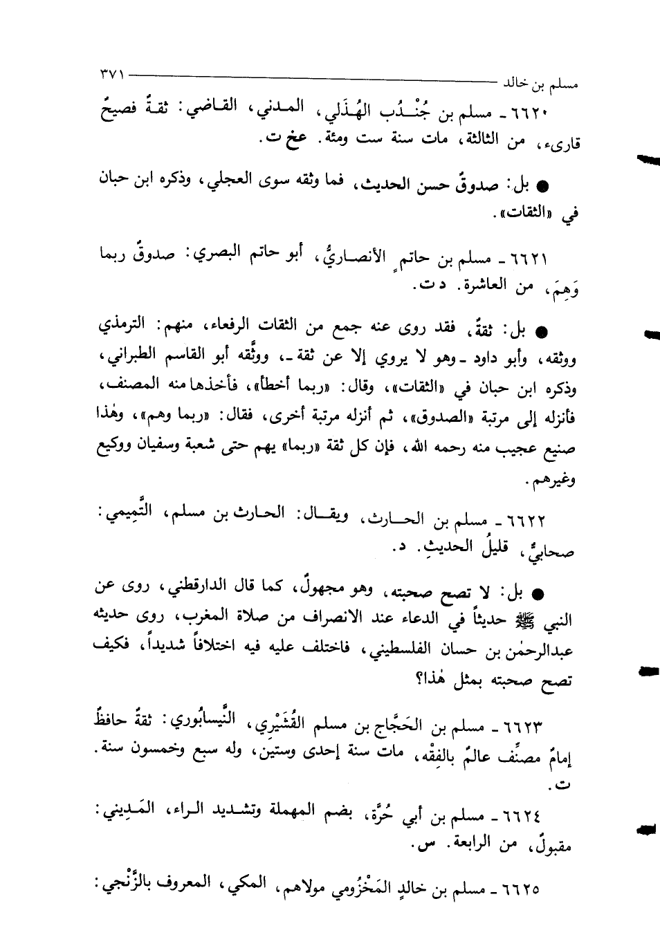 6620 - مسلم بن جُنْدُب الهُذَليُّ، المَدَنيُّ، القاضيُّ: ثقةٌ فصيحٌ قارئ، من الثالثة، مات سنة ست ومئة. عخ ت.