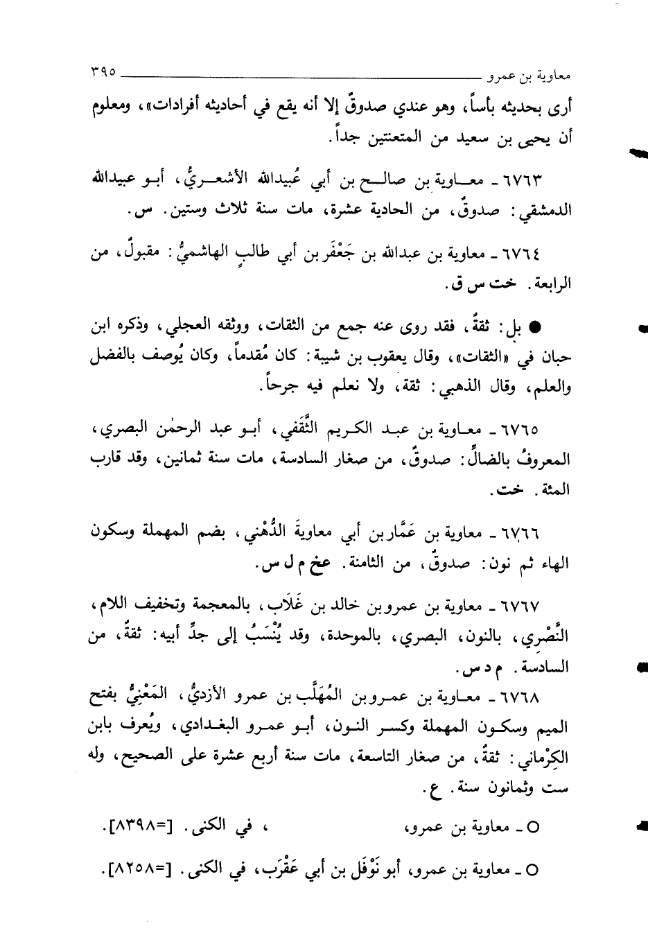 ° - معاوية بن عمرو، في الكنى. [=8398].