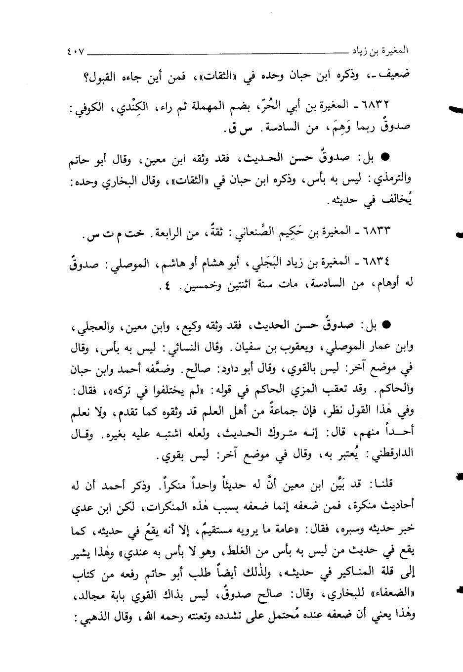 6834 - المغيرة بن زياد البَجَلي، أبو هشام أو هاشم، الموصلي: صدوقٌ له أوهام، من السادسة، مات سنة اثنتين وخمسين. 4.