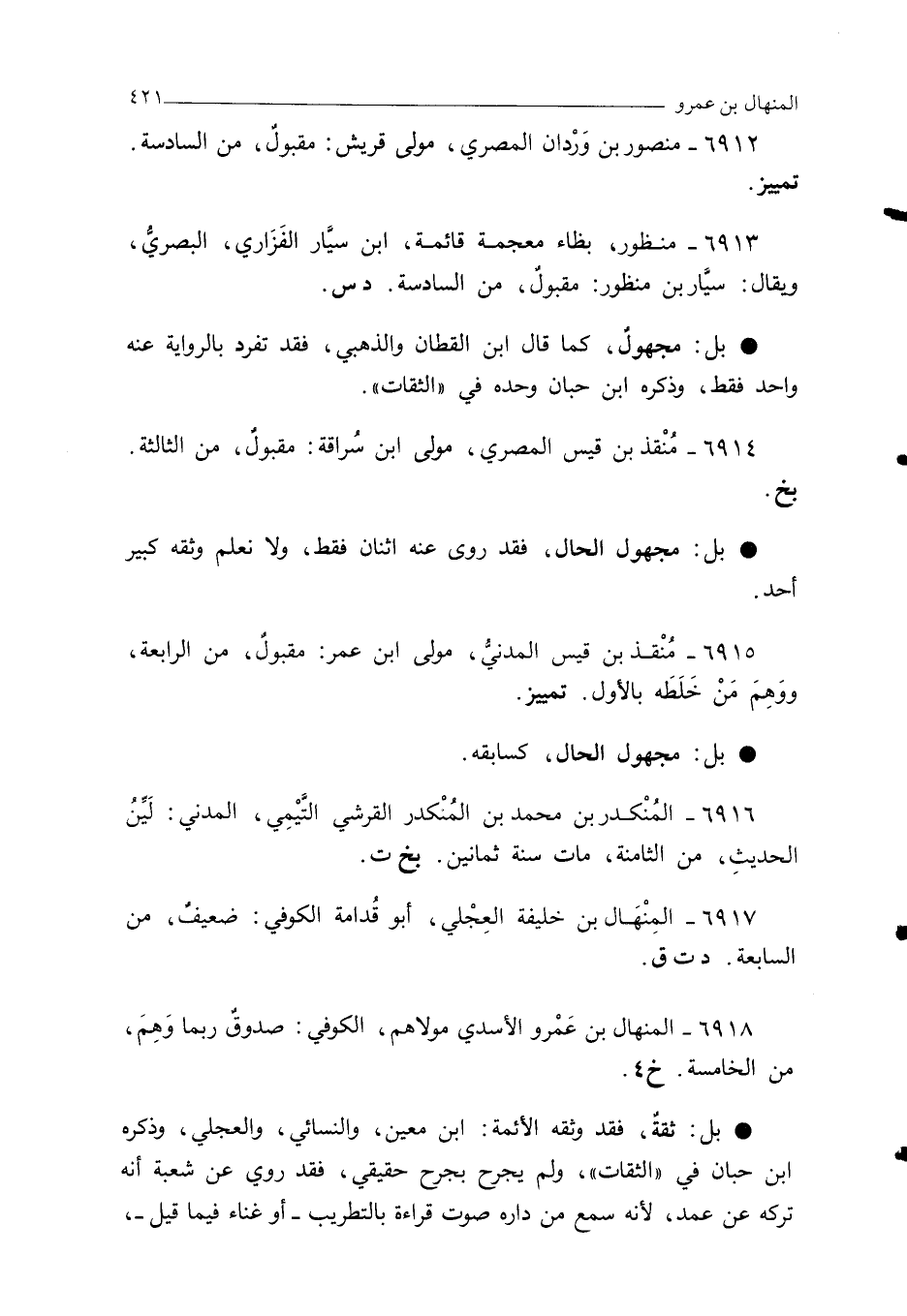 6918 - المنهال بن عَمْرو الأسدي مولاهم، الكوفي: صدوقٌ ربما وَهِمَ، من الخامسة. خ 4.